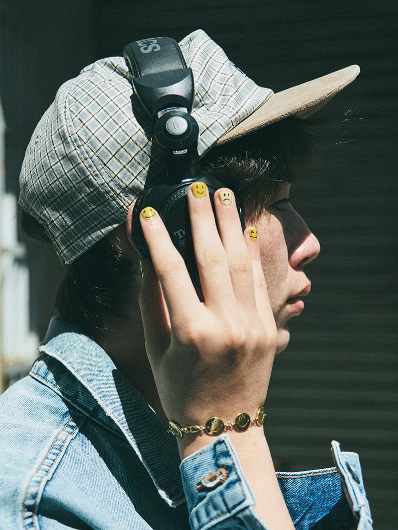 ジャケット(ダイリク)¥88,000/4K 帽子¥6,380/ハフ ジャパン ブレスレット(ニードルズ)¥73,700/ネペンテス ヘッドホン/スタイリスト私物