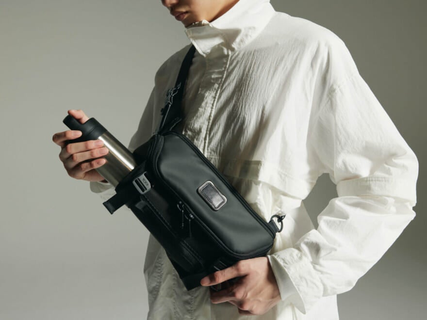 たいていのミニバッグはウォーターボトルを収納するのが難しいけど、「プラトーン」スリングはフロントに防水加工を施したウォーターボトルポケットを完備! 両手が自由になるので、散策が楽しくなること間違いなし。