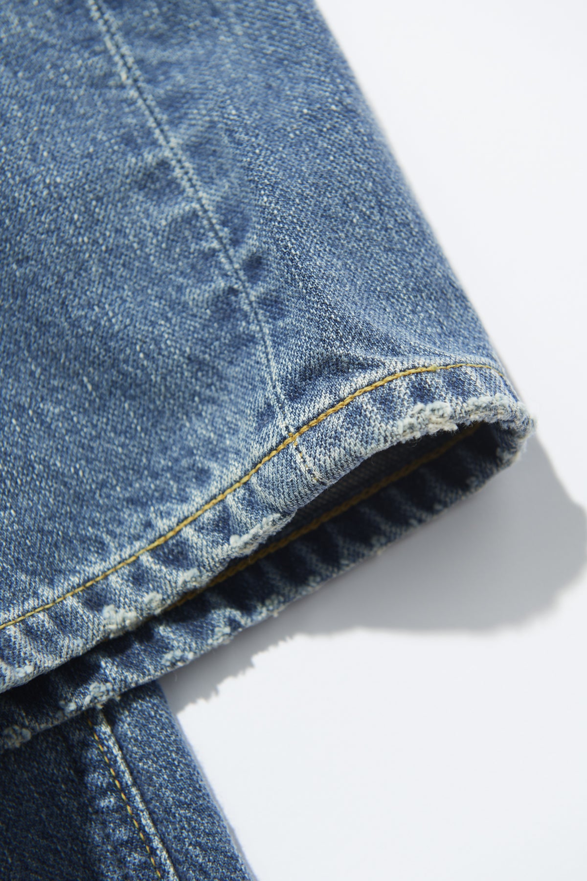 フロントボタンは、ヴィンテージ感があるものを採用。LEEでも名作と言われている大戦モデルをそのまま復刻しているので、雰囲気も抜群。通常のものよりディテールが省略されているところなど、当時の時代背景を感じることができる一本。