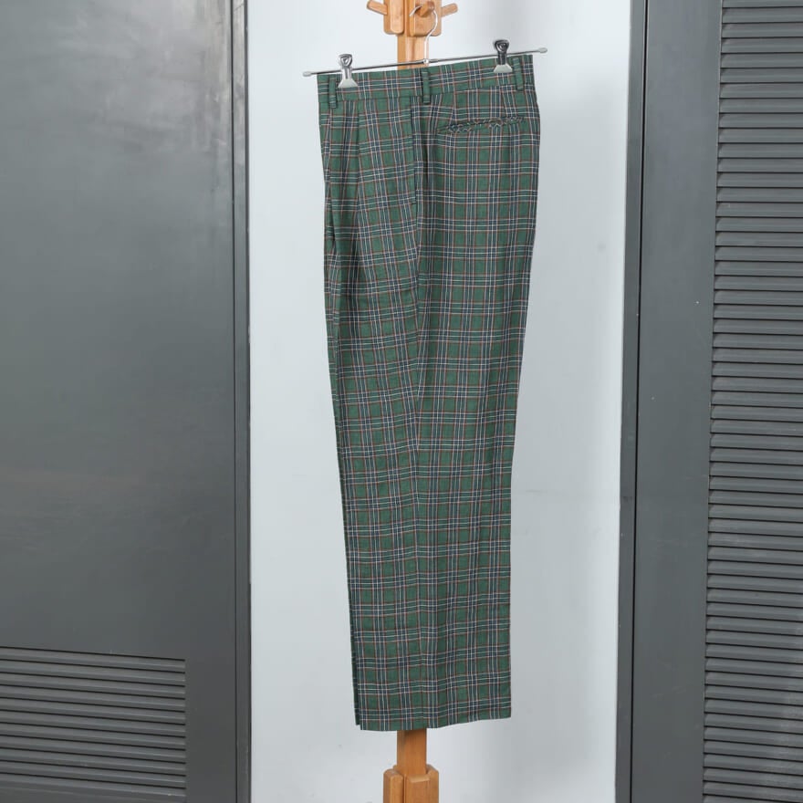 パンツ専業ブランドとしてお馴染みのニートによるレトロなチェック柄スラックスに注目。特殊な染め方によって糸を芯まで染め切らずに、色が抜けたような風合いに仕上げた。フロントがジップではなくボタンフライというのもヴィンテージの雰囲気。新品ではき込んだような気分を味わえる。