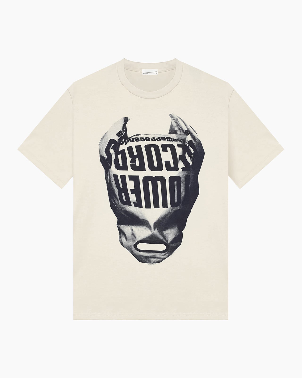 タワーレコードのシンボリックなビニールのレコードバッグを、実際に手で形をつくりながらツノや顔の輪郭、目の窪みなどを表現し、取っ手を口に見立てたデザイン通称「タワレコ仮面」のグラフィックをフロントに、バックには LADとTOWER のミックスロゴをプリント。