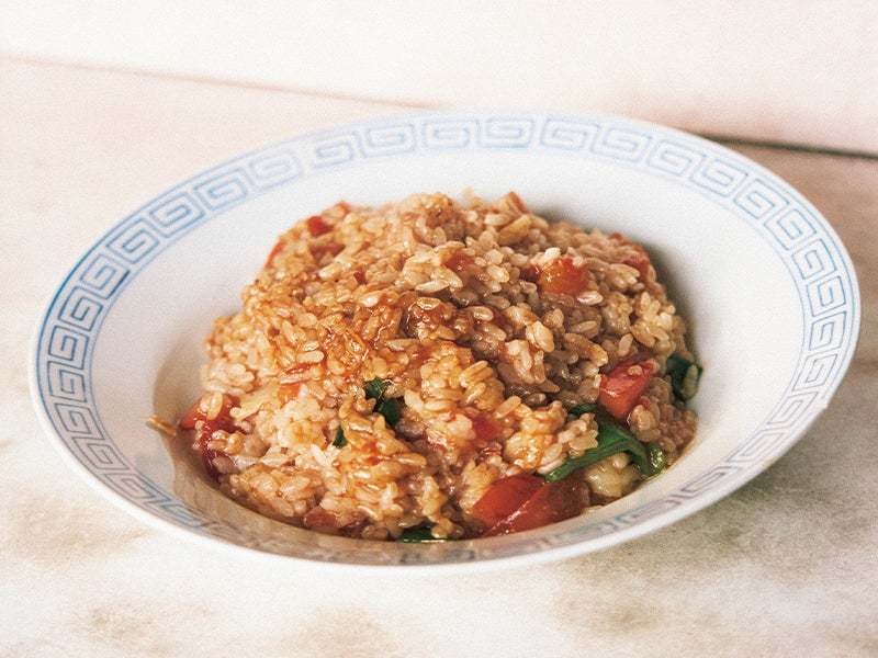 中華料理においてトマトはメジャーな食材だが、チャーハンに使うことはめったにない。こちらのトマトチャーハンは店主のワンさんがまかないとして食べていたものが、口コミで人気になったとか。味の決め手は鶏スープとバター。優しいうま味が口の中いっぱいに広がる。