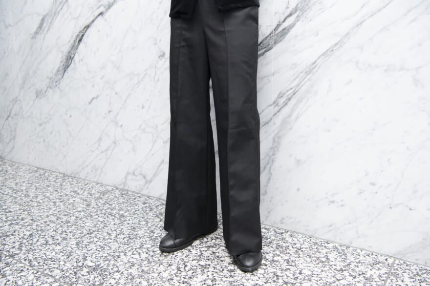 「オールブラックでまとめたワントーンコーデはやっぱり落ち着きます。ただし地味になりすぎないよう、素材とシルエットにこだわりました」。