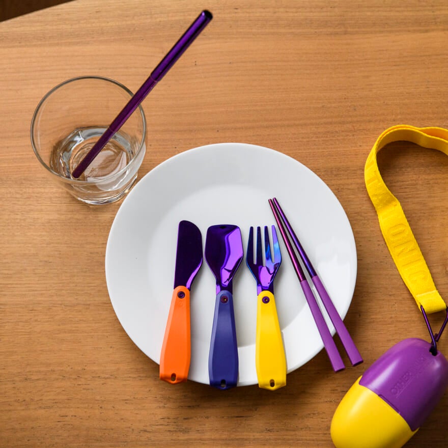 おもちゃのカプセルみたいな収納ケースの中に折りたたみ式のフォーク、ナイフ、スプーン、お箸、ストローが収納されたカトラリーセットを発見。コンパクトで軽量だから邪魔にならずに持ち歩けるし、外出先で食事をするときにも自分専用のカトラリーがあったら何かと安心だよね。なかなか見かけないポップなカラーリングは、持っているだけで気分が上がること請け合い。