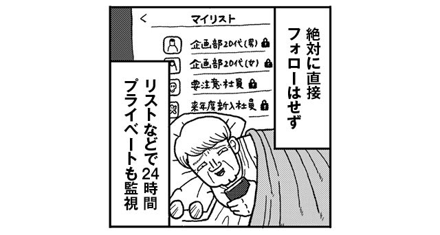 最近よくいるのが部下のSNSをチェックする上司! フルネームの検索は当たり前。ときには投稿のネタになる行動をして、それをもとにアカウントを探すという悪魔のような手を使う。