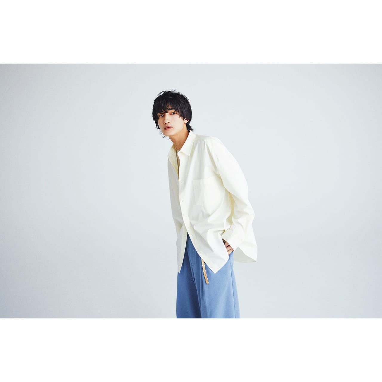 シャツ¥16,500・ニットTシャツ¥12,100/エディフィス 新宿[TEL:03-5366-5481] パンツ(サバイ)¥29,700/HEMT PR[TEL:03-6721-0882] ベルト/スタイリスト私物