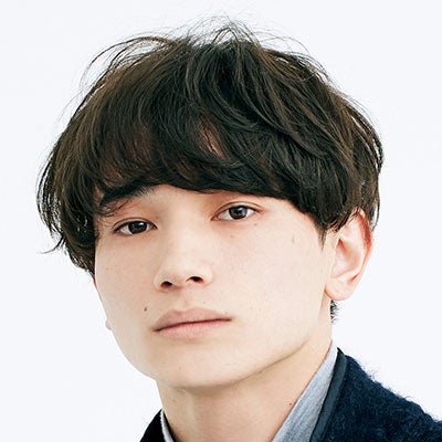 耳まわりと衿足を短くカットし、クリーンさを強調した。さらに前髪をアップにすることで、いっそうすっきりとして見える。全体に内巻きワンカールのパーマがかかっているから、スタイリングも簡単だ。(担当/渡部翔太さん[koti BY broocH] モデル/中村晴大さん)