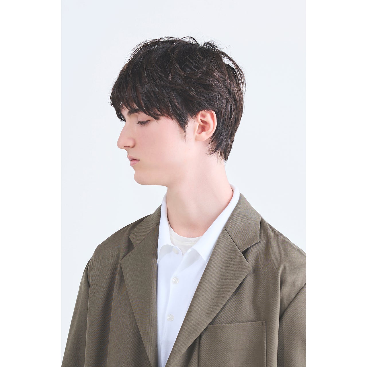 カットベースはラインを重めに残した丸みのあるマッシュショート。顔まわりはややラインが残るようにブラントカット気味に。前髪の中央はレザー(カミソリ)で自然な毛流れができるようにやや短めに調整を。トップのみレイヤーを仕込んで、ややザクザクとしたラフな毛流れを作っている。一見、シンプルに見えるショートだが、随所に計算されたカットを仕込むことで、無難なマッシュヘアとして埋もれず、垢抜けた印象にすることが可能なのだ。