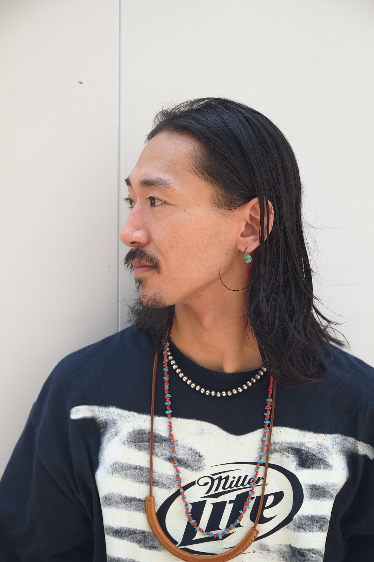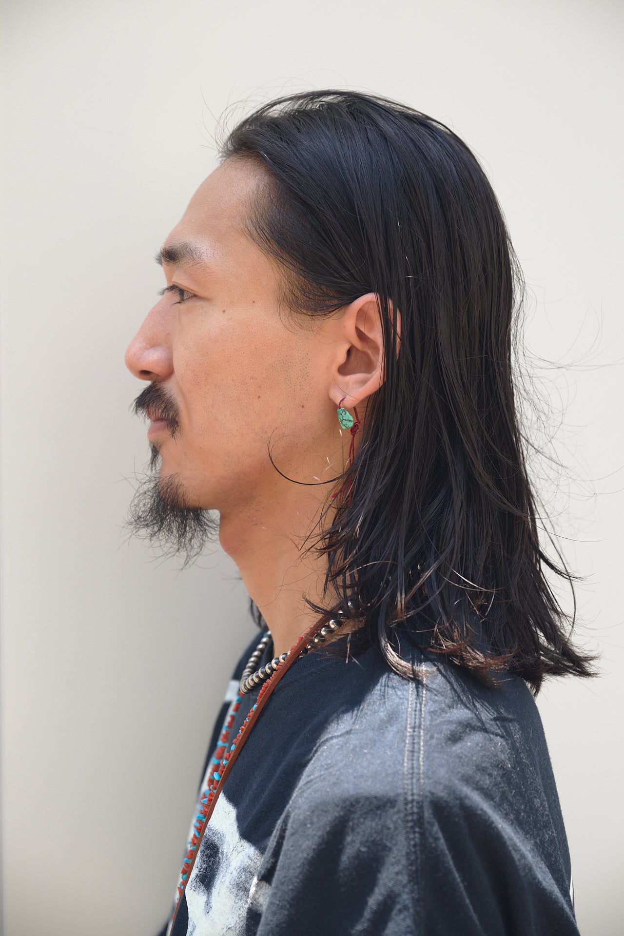 「耳にかけてすっきり見せるロングヘア。SAL 代官山に通っています。N. ポリッシュオイルを使い、ナチュラルな質感になるようにスタイリングしています」。