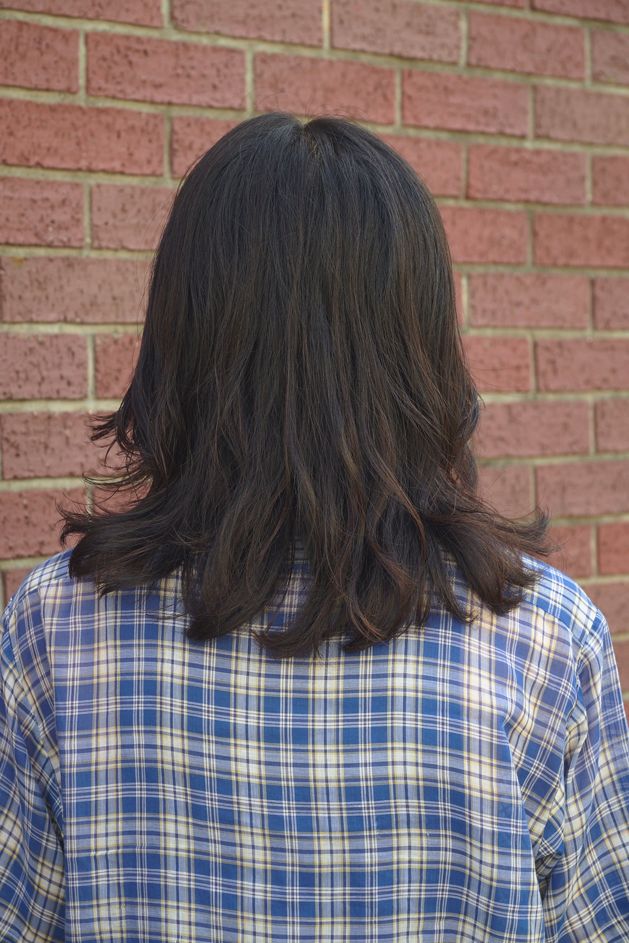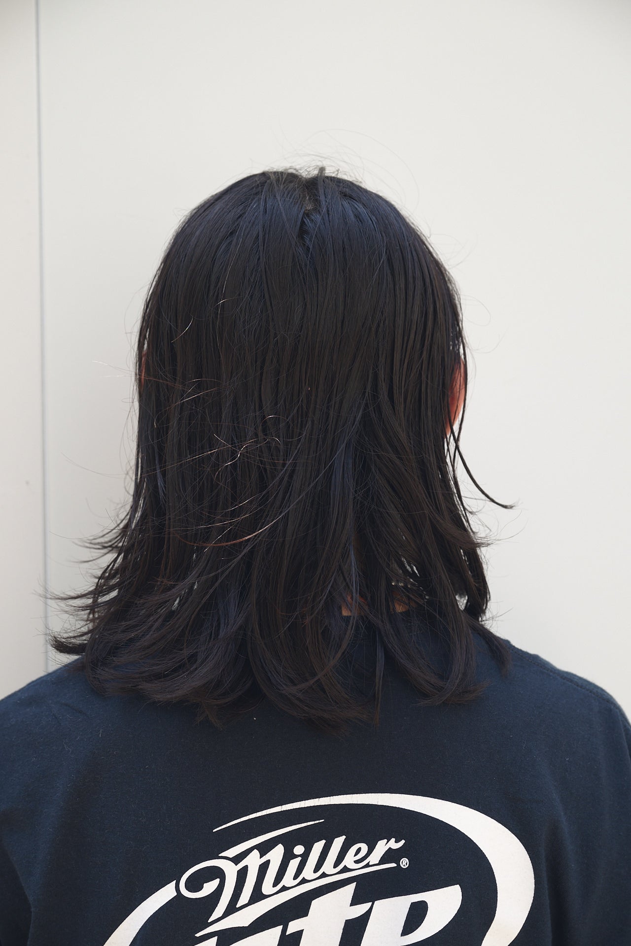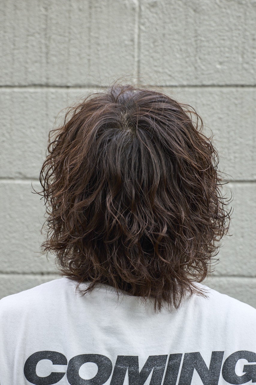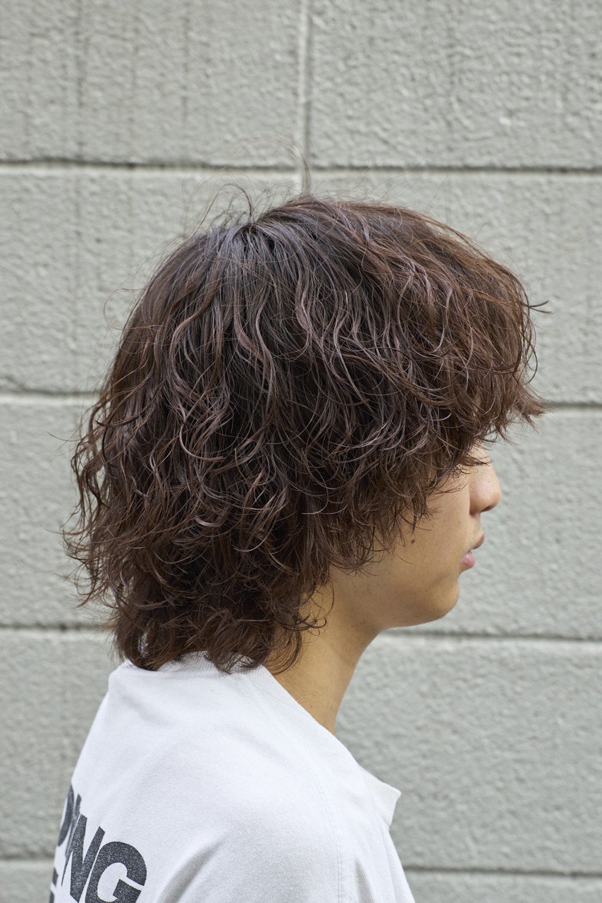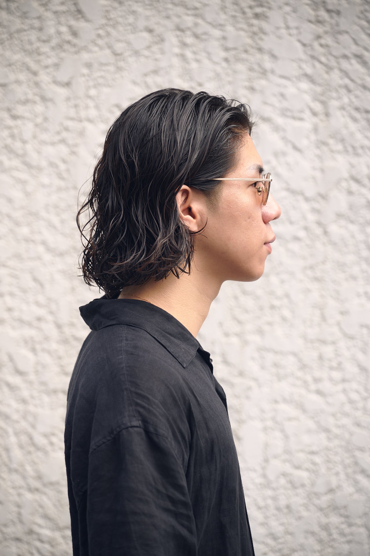 「耳前を少し短めにカットし、顔まわりにニュアンスを出した動きのあるロング。すいたりツーブロックにせず、レイヤーを入れているのがこだわりです。毛先にワンカールパーマをかけ、自然とくびれたシルエットにしています。フォームタイプのワックスを使うとスタイリングがラクです」。