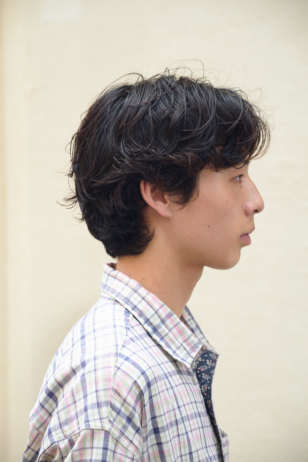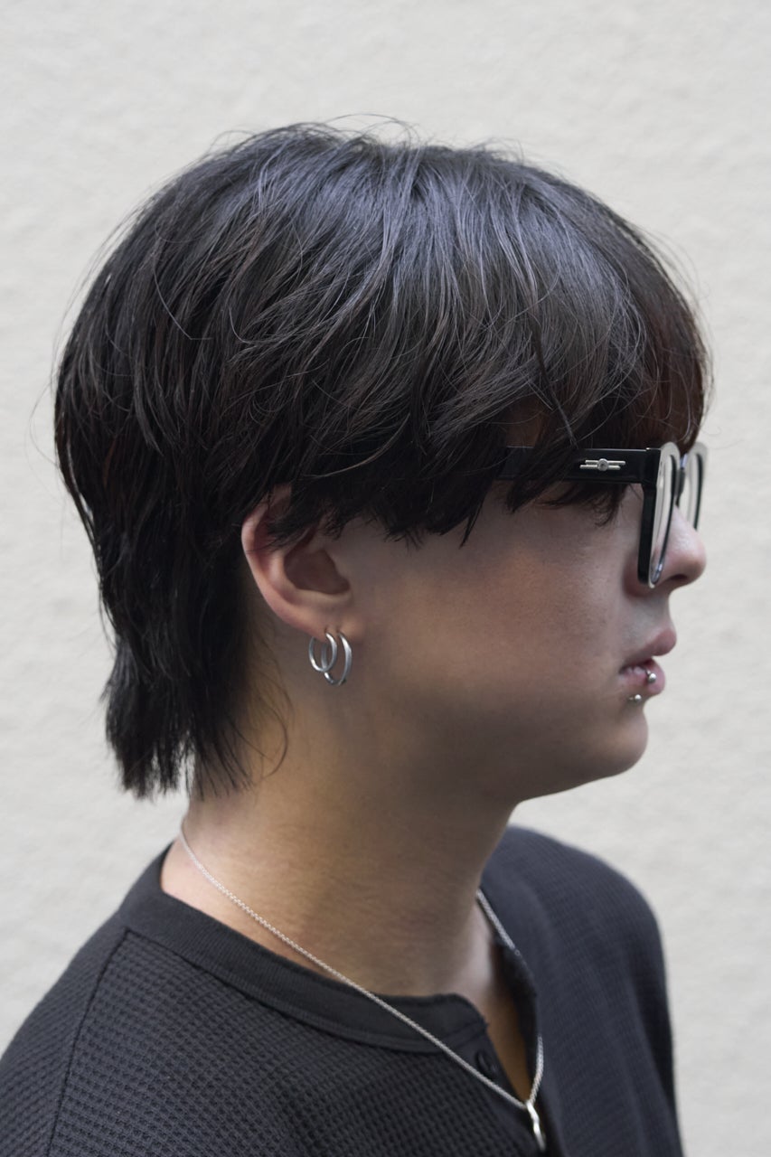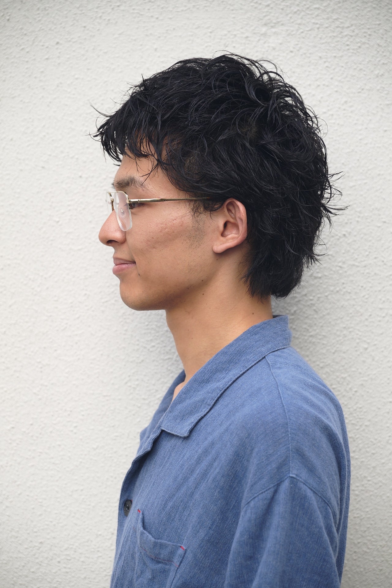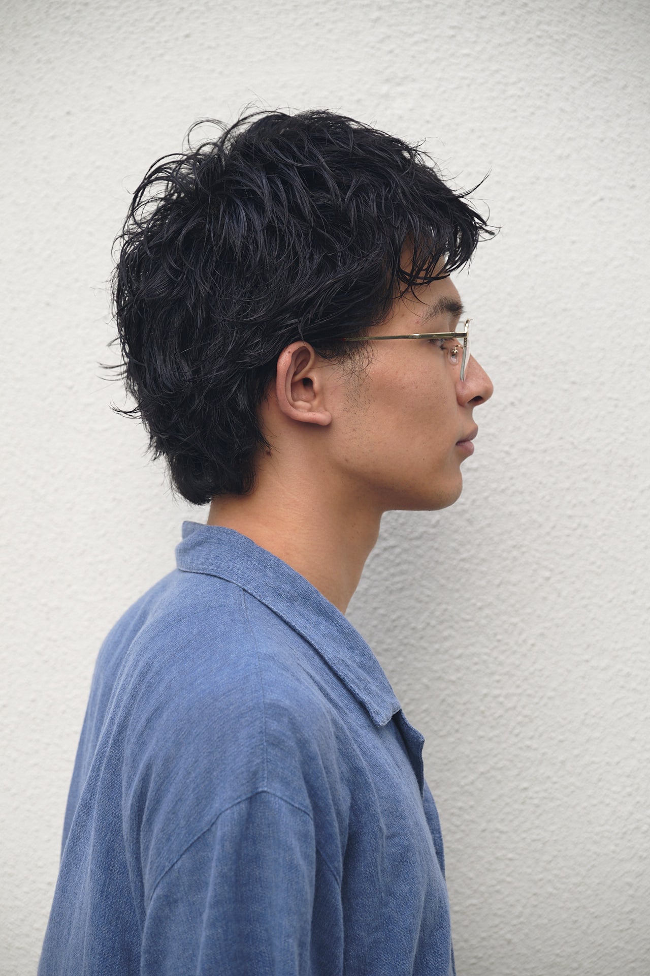 「春先くらいからパーマスタイルをキープ中。とにかくラフにキマるパーマで、前髪は分けても下ろしてもいいレングスに。キャップをかぶったときのえりあしの動きもアクセントになります。ムースでツヤっぽくも、ドライな質感で寝グセっぽくもできます」。