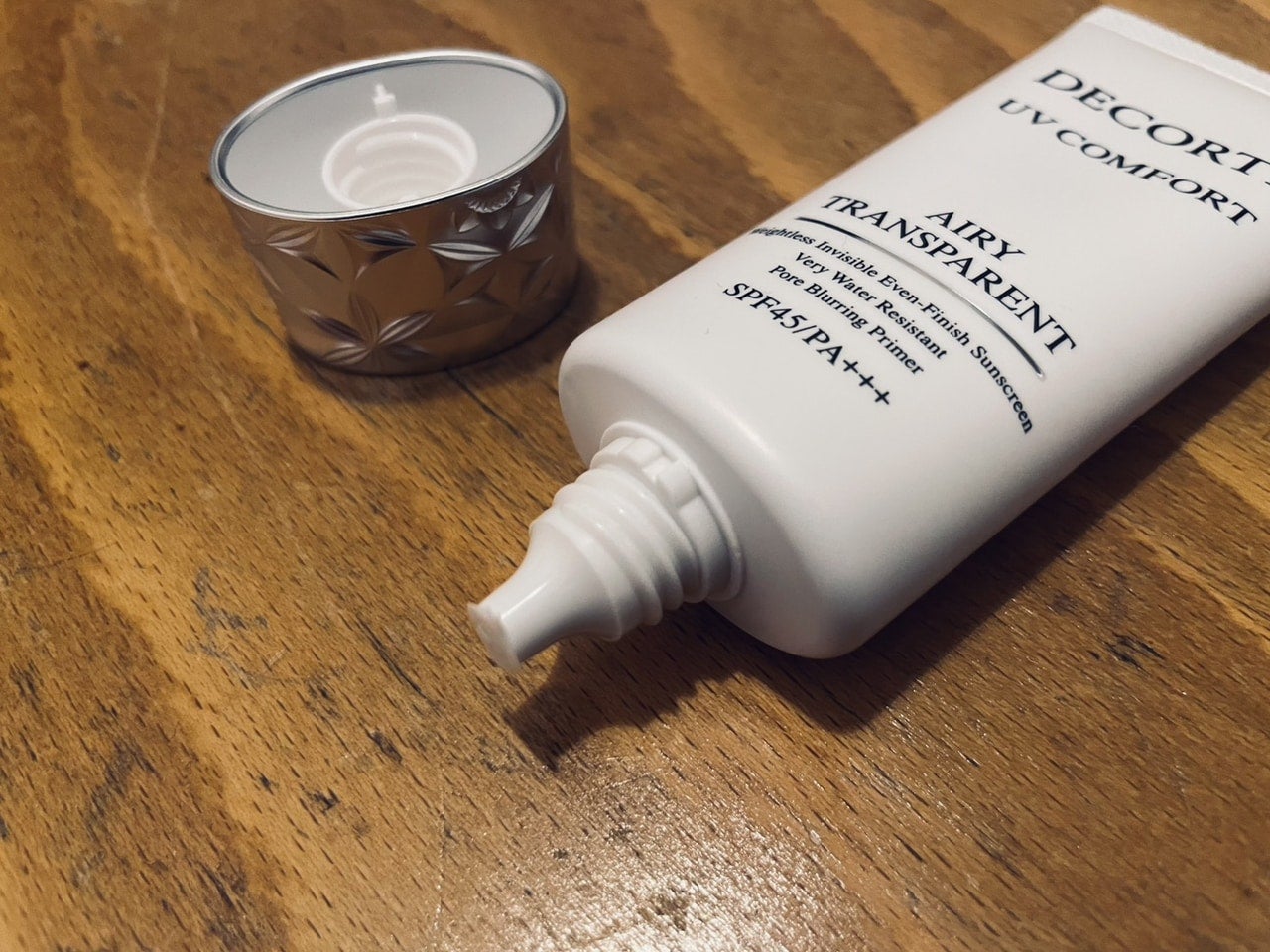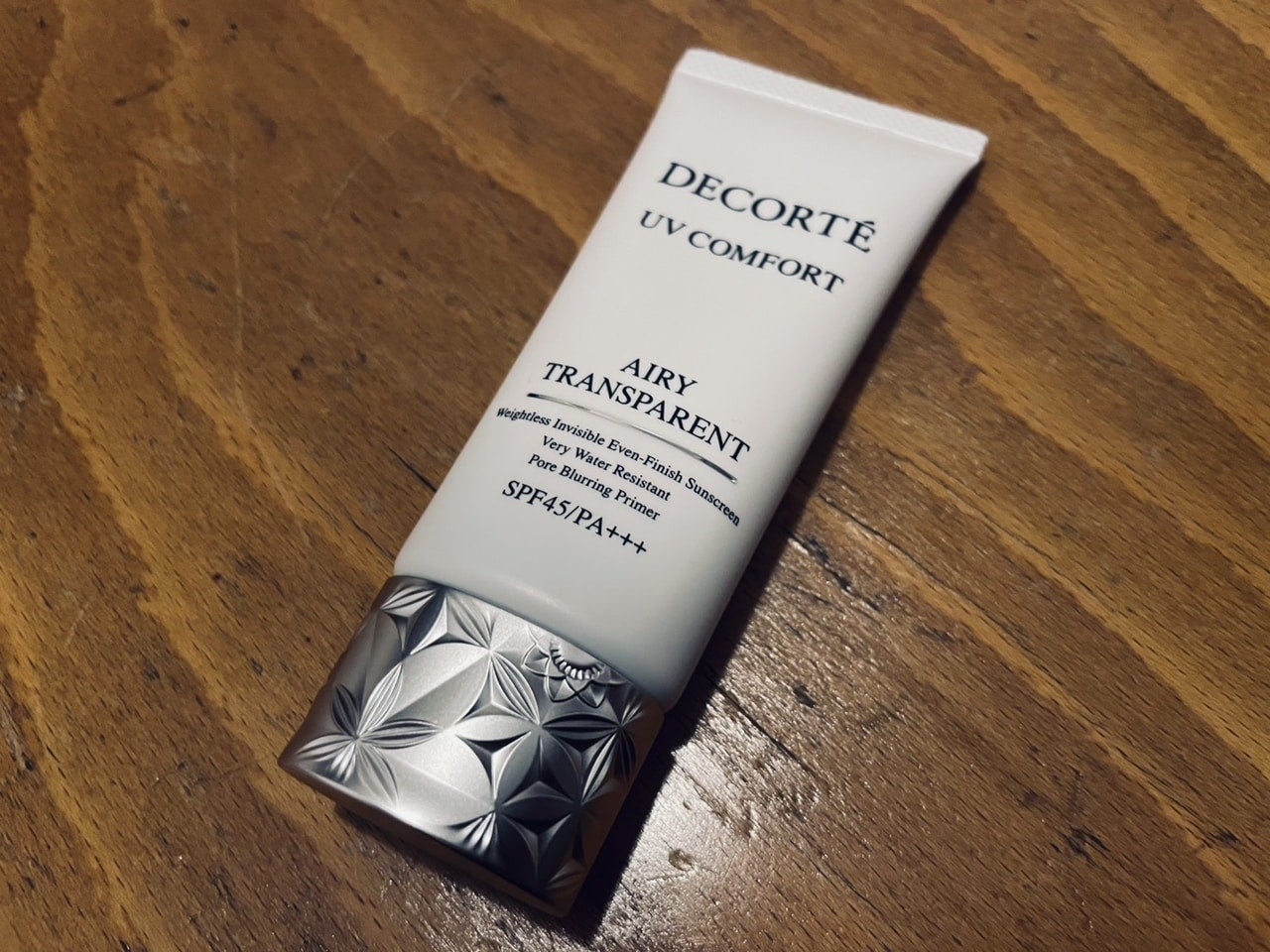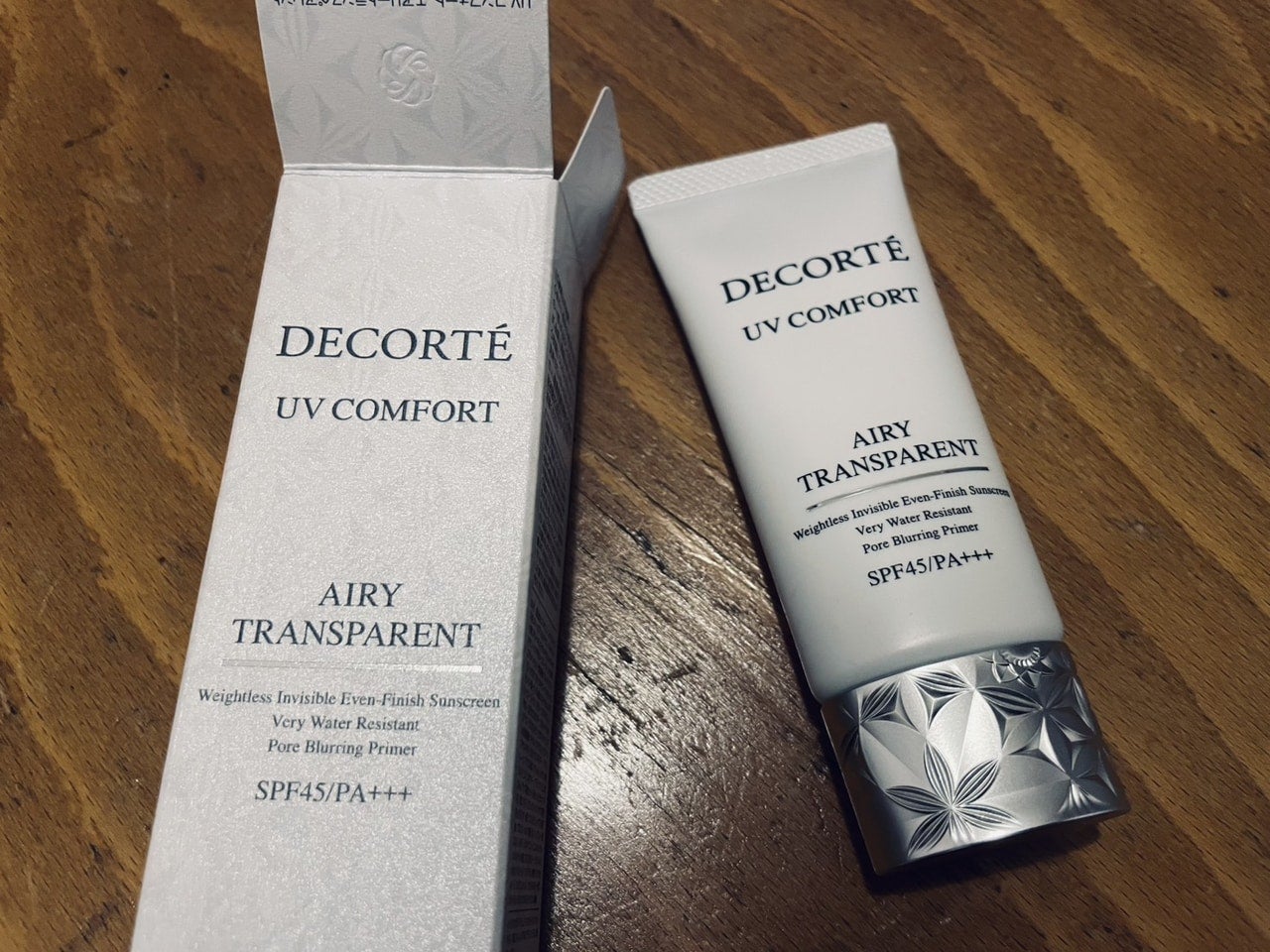 前にコスメデコルテの名作「リポソーム アドバンスト リペアセラム」を使ったときに感動して、今年はコスメデコルテの日焼け止め「UV コンフォートエアリートランスペアレント」をチョイスしてみました。