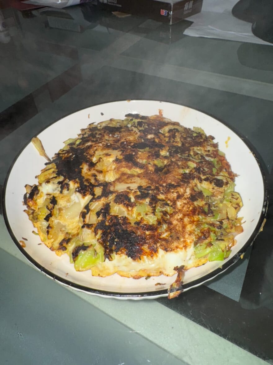 あとハマってるのはキャベツと卵だけを使ったヘルシーなお好み焼き!