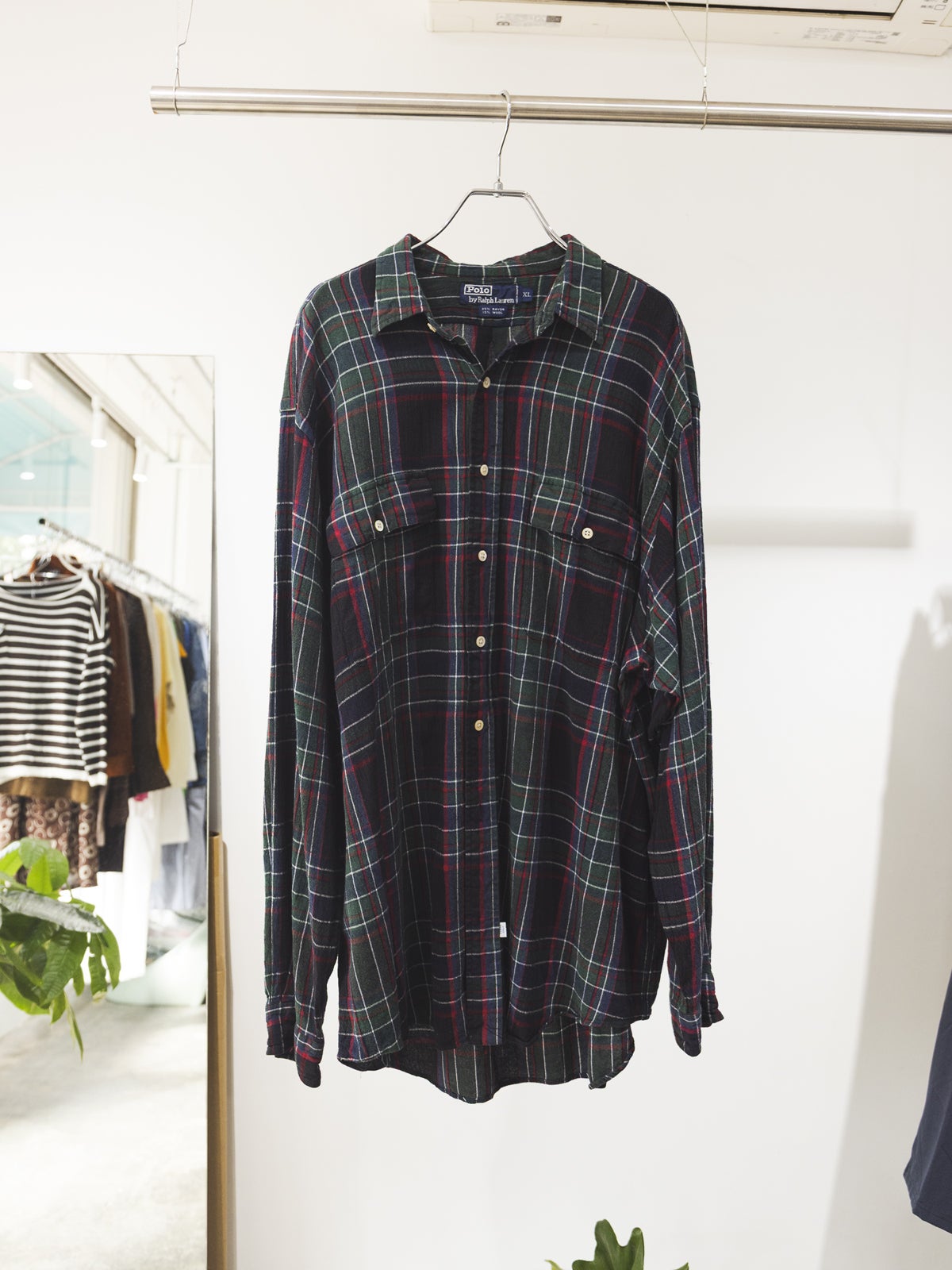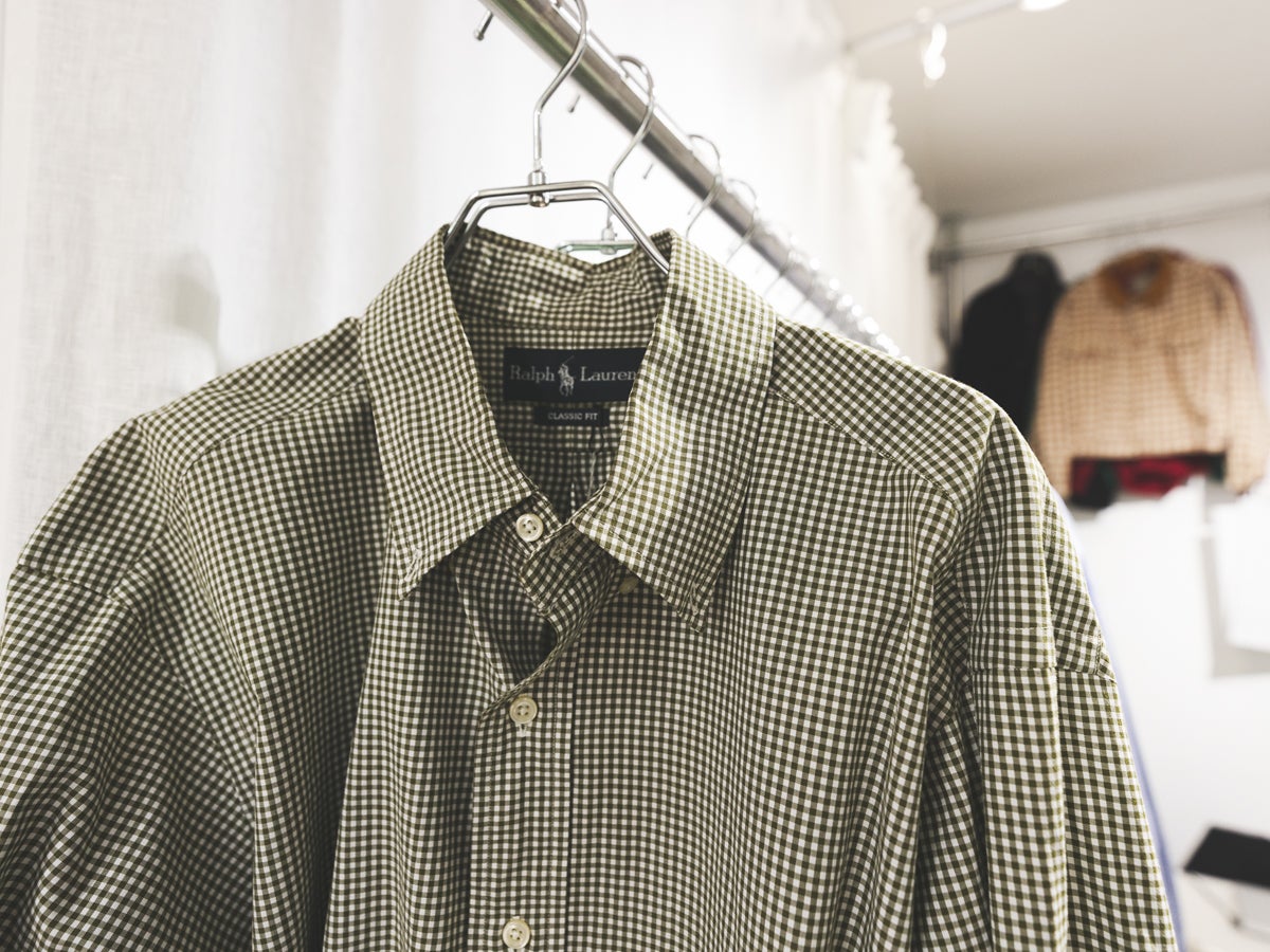 中でも力を入れているのがポロ ラルフ ローレンのシャツ類。石川さん好みのギンガムチェックシャツを中心にチェック柄、無地とバリエーションも多い。「ラルフ ローレンは意外とBD以外のシャツが少ないのでレギュラーカラーや、コットンじゃない素材のように珍しいものは見つけたら買い付けています」(石川)。