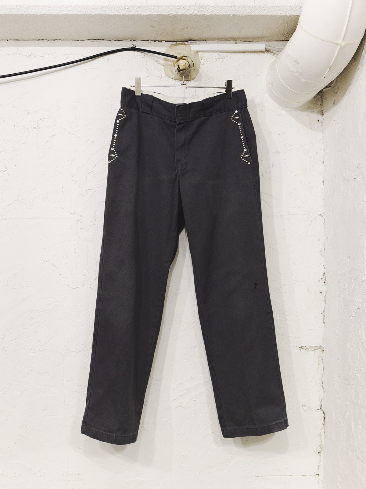 ポケット部分だけスタッズでカスタムされたディッキーズ874。「これは回遊中に見つけて上がりました。フロントポケットだけスタッズでカスタムされています。こういうカスタムって、ついやりすぎちゃうんですが、これは“侘び寂び”をわかっている人の仕事だなと思いました」(大澤)
