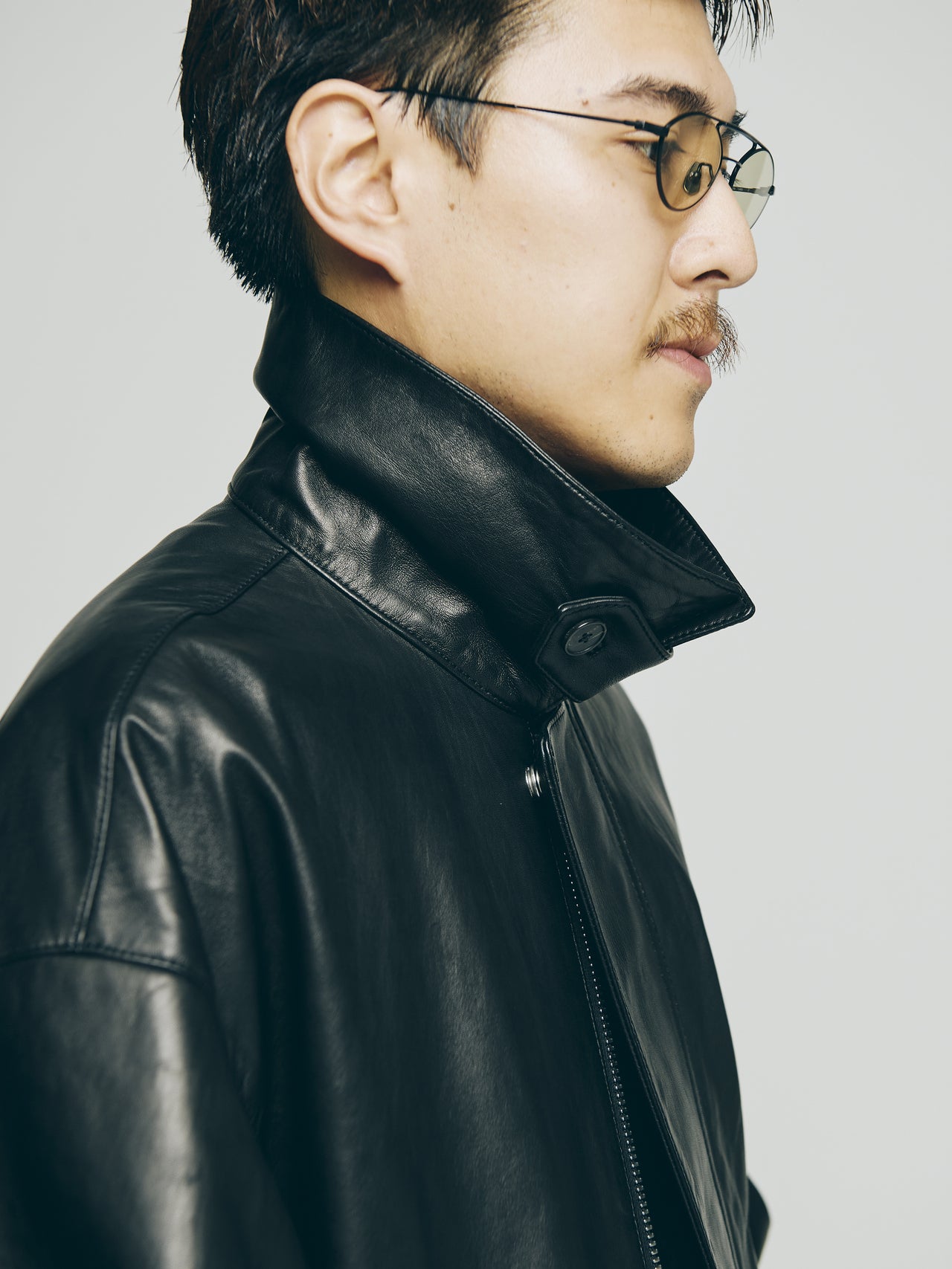 「昨年の人気モデルをやや大きめにリサイズした武骨さと上品な雰囲気をあわせ持つレザーコート。鮮やかなブルーデニムやスウェットなどラフなアイテムと合わせて着たい」。