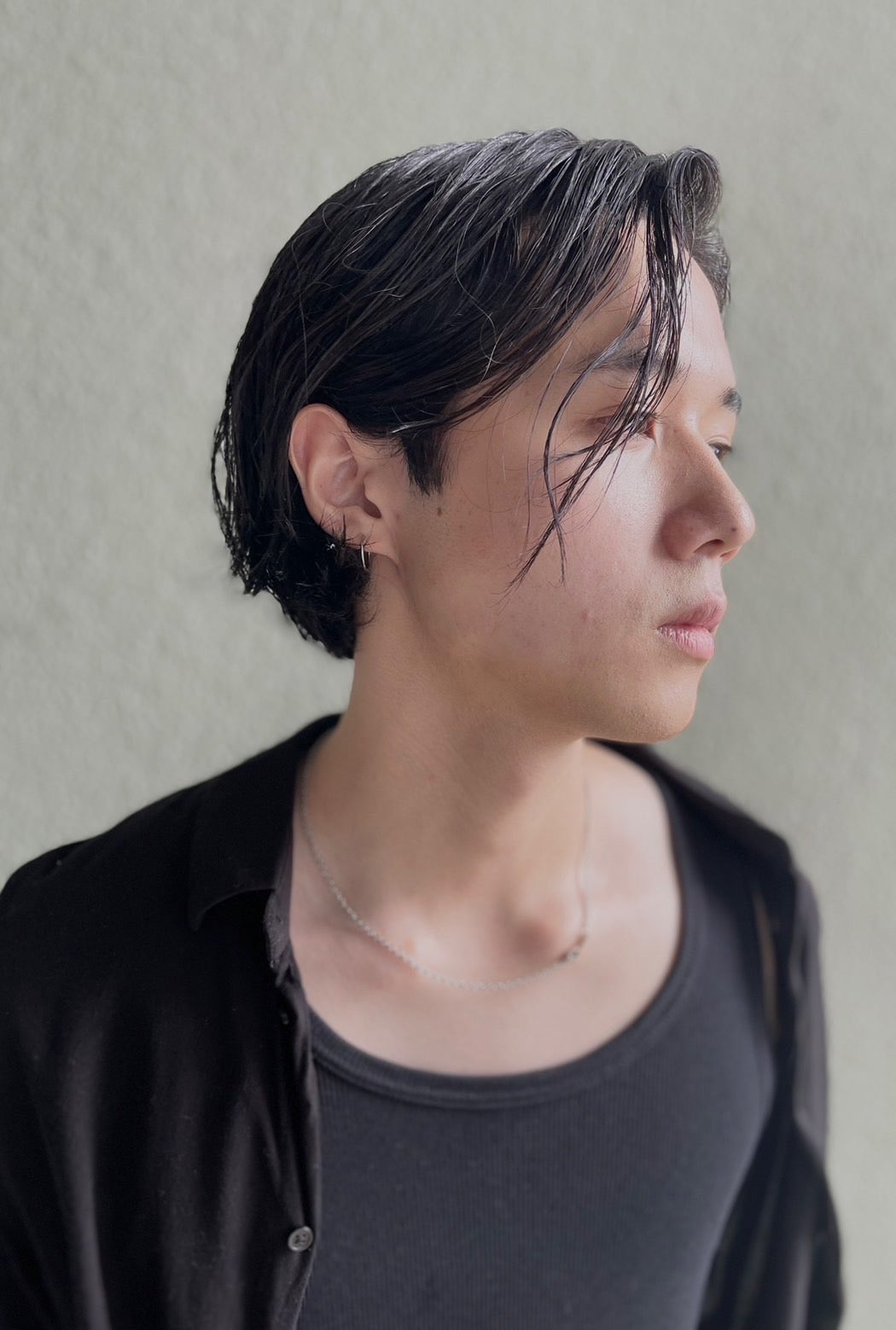 「ブリーチを活かした白寄りのベージュ系カラーで、服にも合わせやすいベリーショートにチェンジ。ハイトーンカラーはパサつきやすいため、スタイリングはジェルワックスで動きを出しつつ、毛先を整えることを意識しています。普段から古着を着ることが多いので、カジュアルでもクリーンに見えるよう調整。色味とスタイリング次第で、古着コーデもすっきり決まるスタイルです」。
