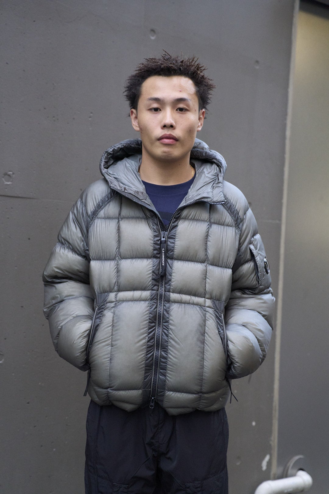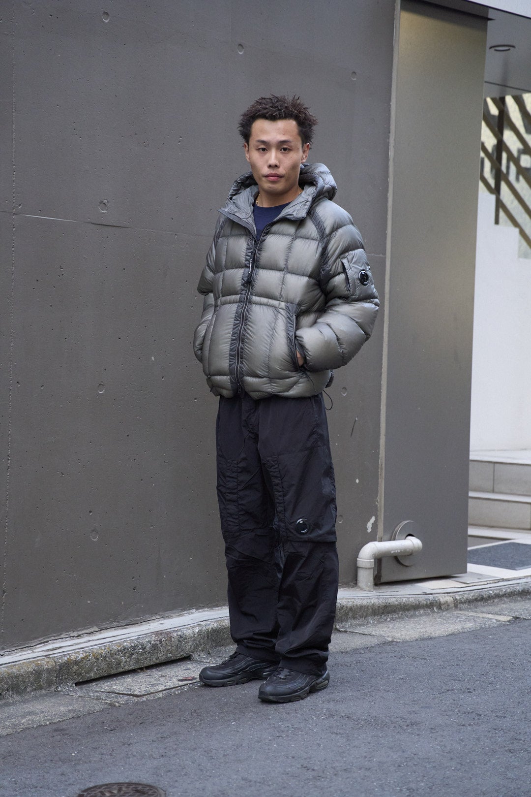 服の仕事に携わる人たちは、どんなダウンアイテムに注目して、どういう風に着こなしているのだろうか。プレス、ショップスタッフ…服のプロたちの今季おすすめの新作ダウンと、その着こなしをお届け。今回はC.P. COMPANY ストアスタッフの渡部 凜さん。
