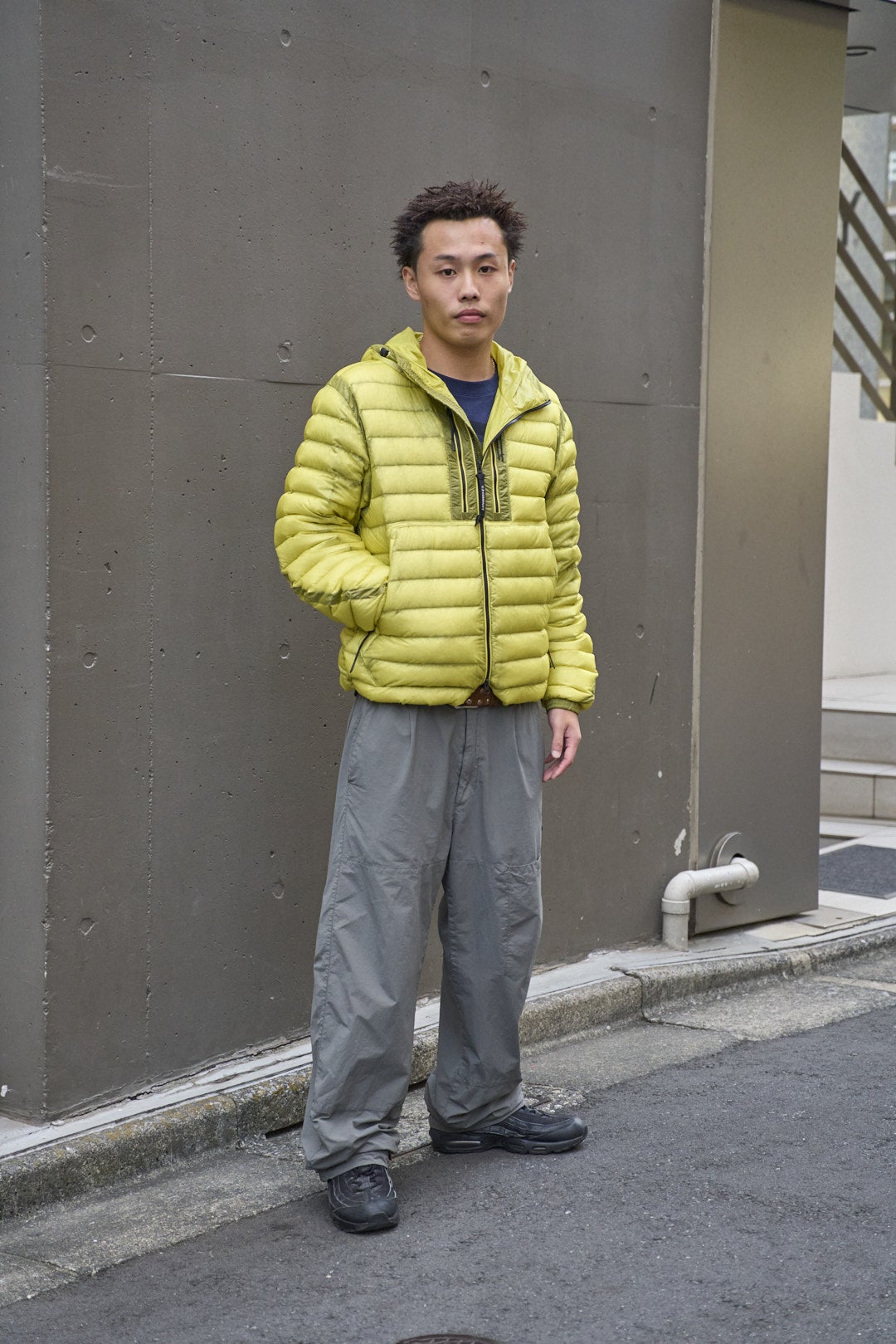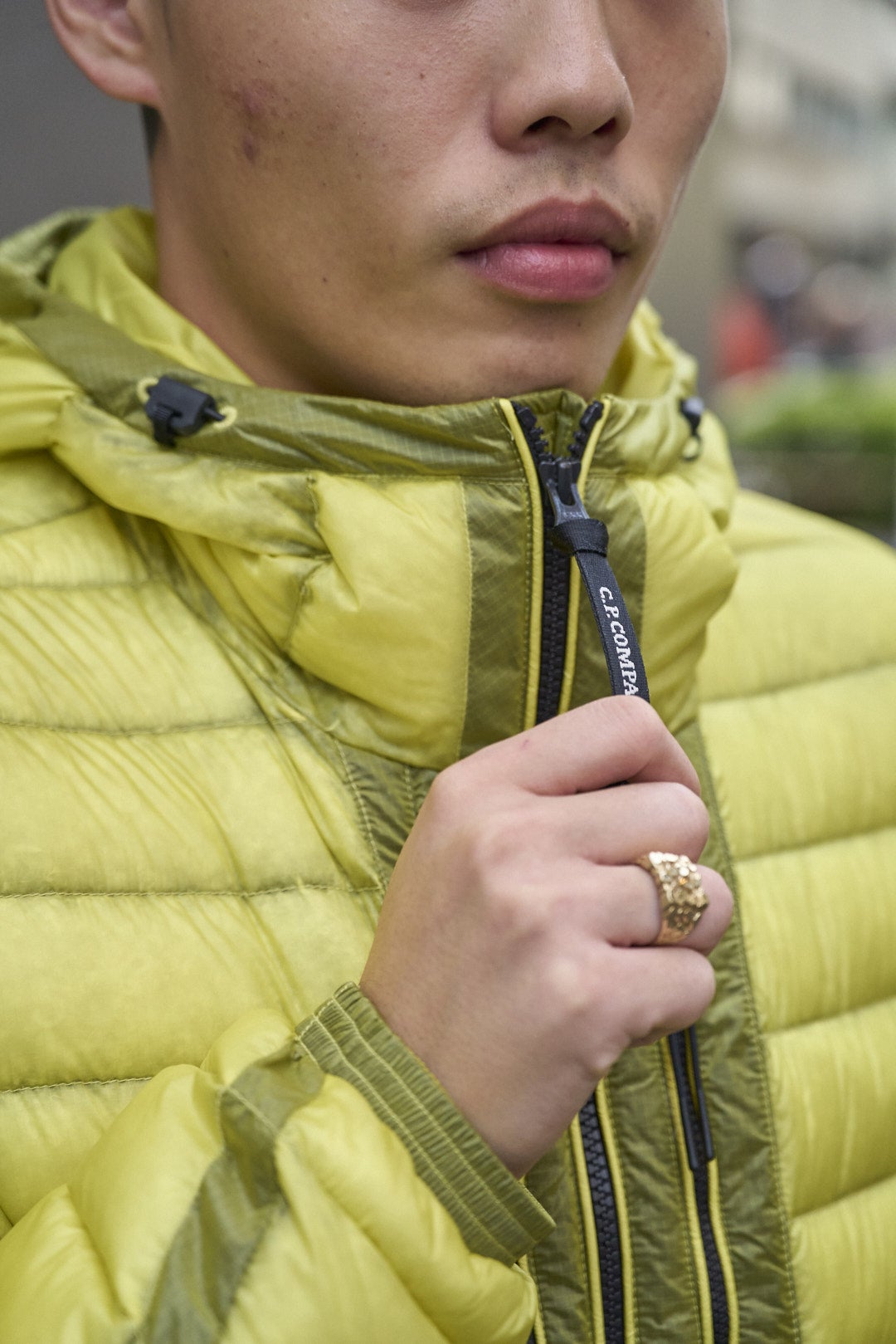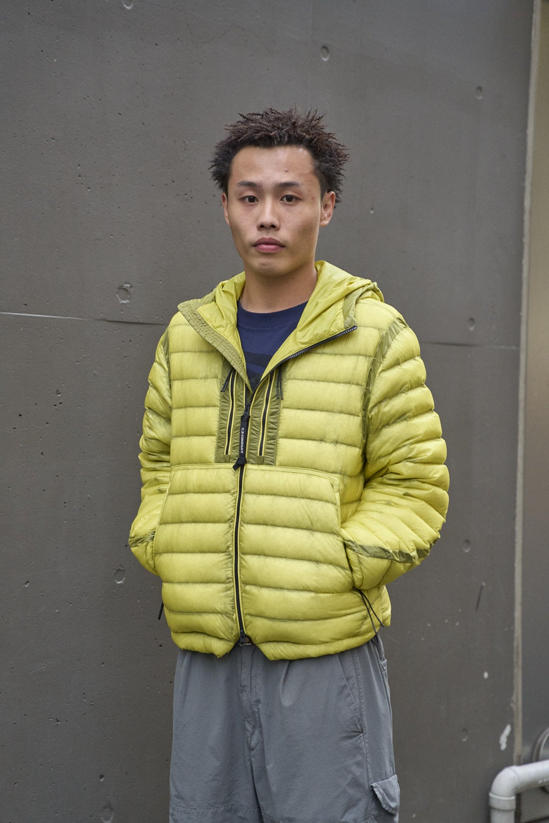 服の仕事に携わる人たちは、どんなダウンアイテムに注目して、どういう風に着こなしているのだろうか。プレス、ショップスタッフ…服のプロたちの今季おすすめの新作ダウンと、その着こなしをお届け。今回はC.P. COMPANY ストアスタッフの渡部 凜さん。