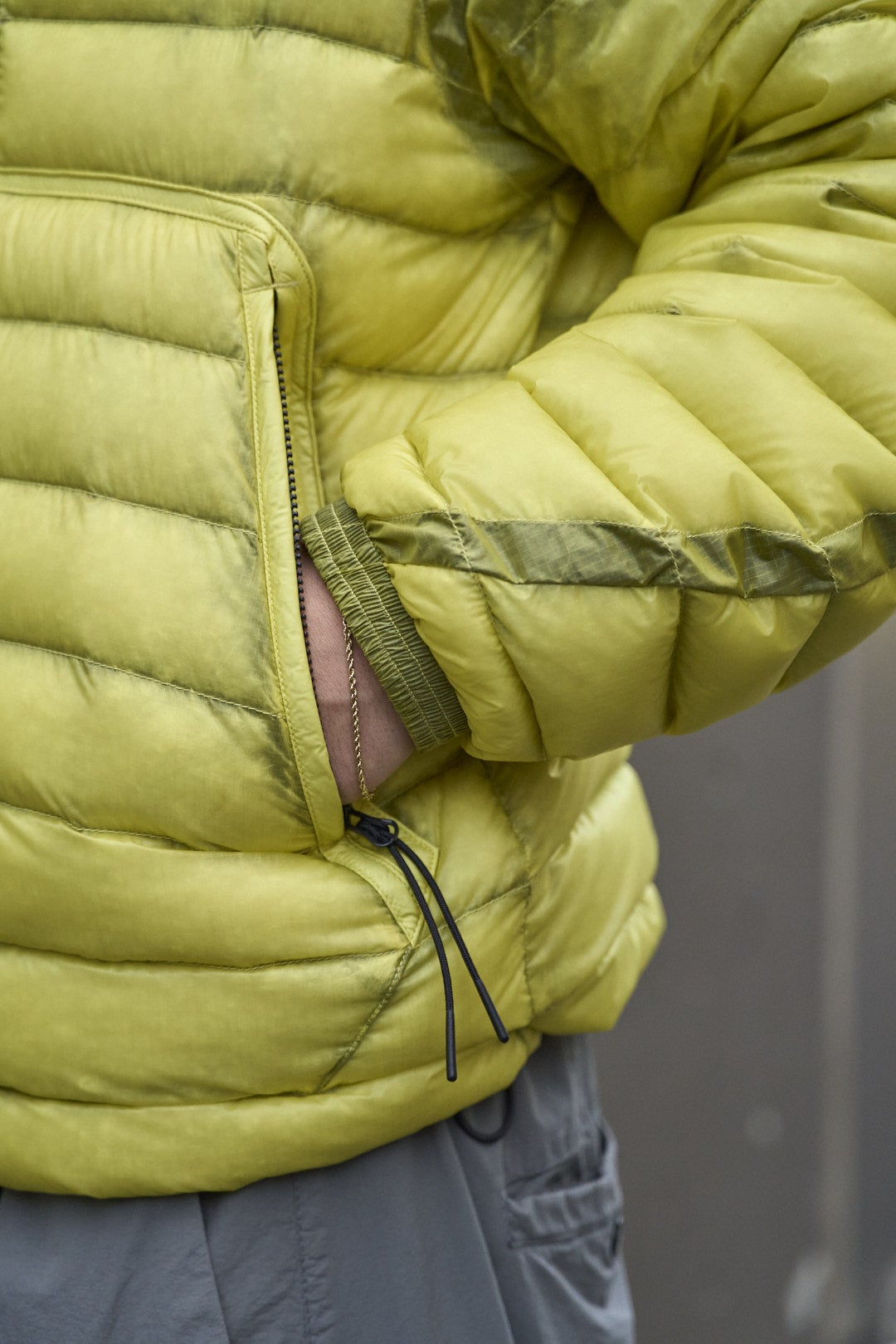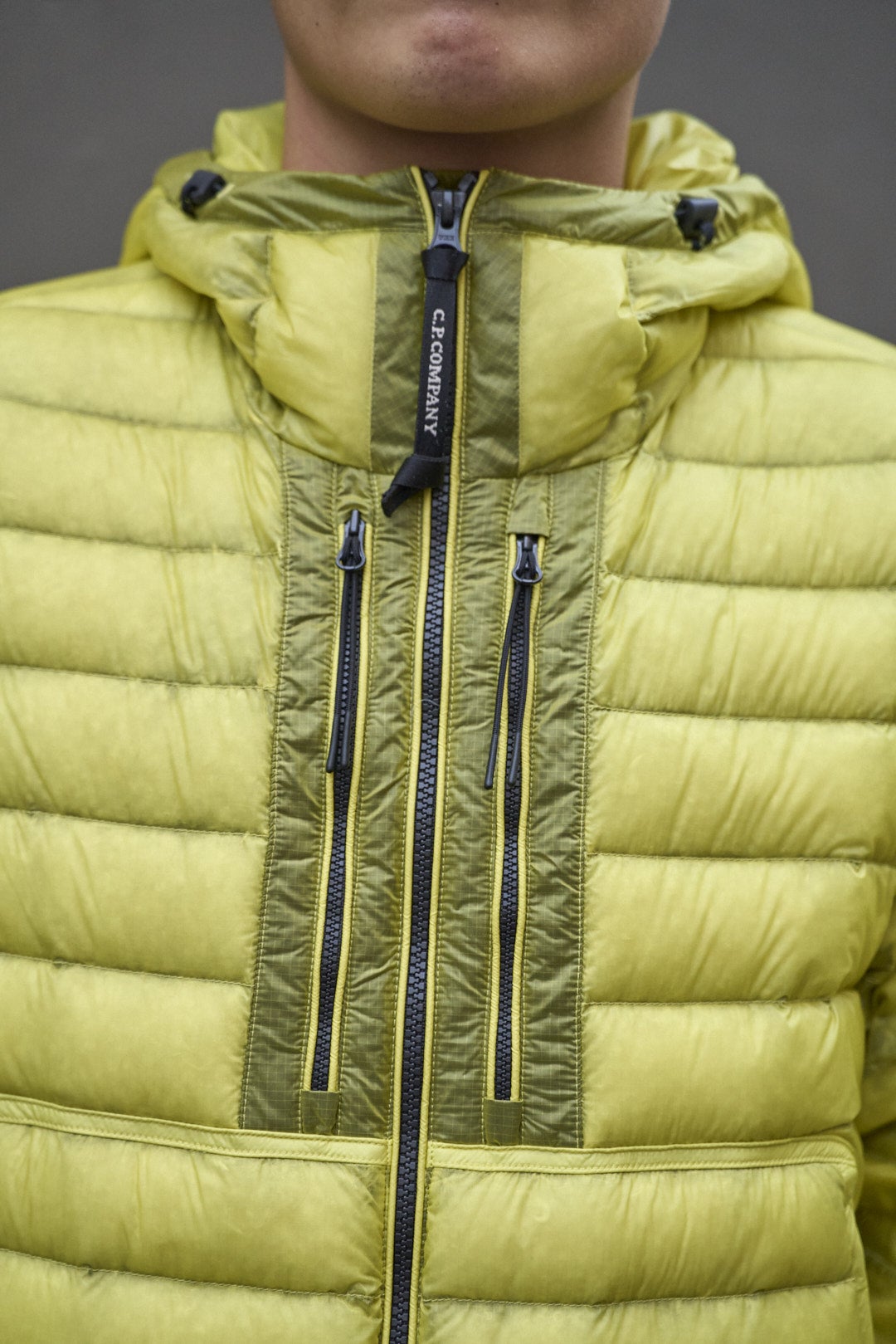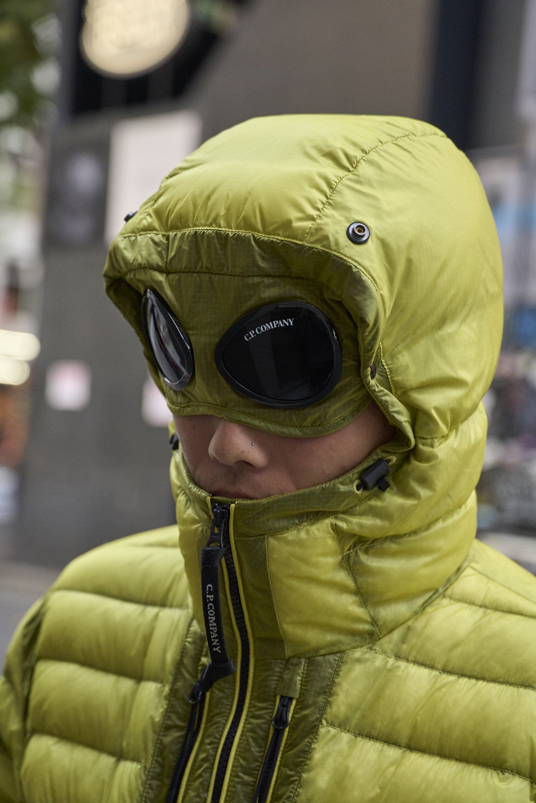 「超軽量ながら高い保温性で、街着としてぴったりの1着は、薄いリップストップナイロンに直接ダウンを入れることでソフトな着心地を実現。ブランドのアイコンであるゴーグルフードつきで、今年も人気のアウターです。シーピーカンパニーらしい色鮮やかなカラーをチョイスして、コーディネートのアクセントとして着るのがおすすめ」。