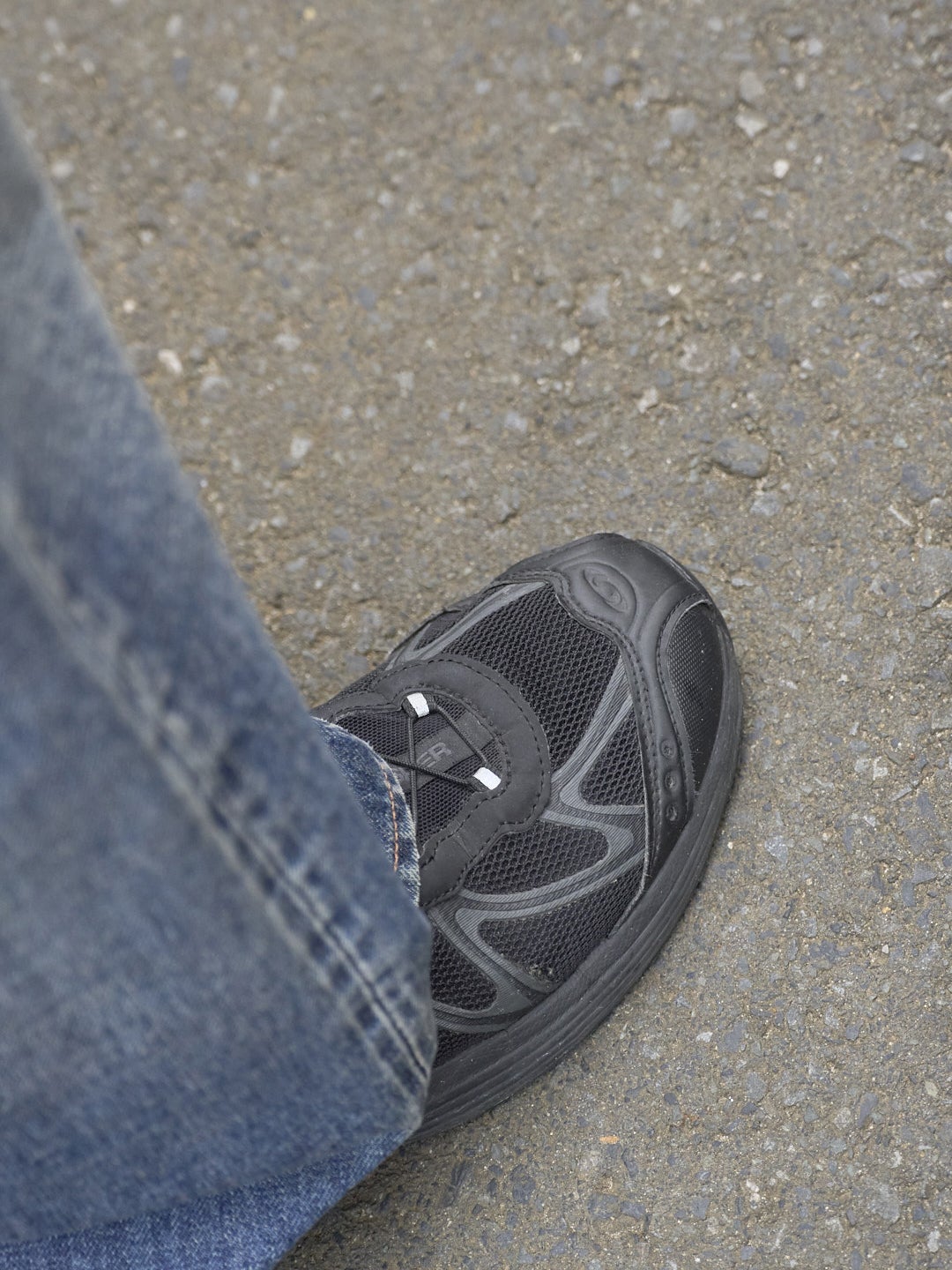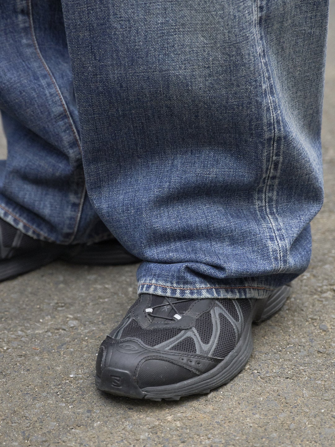 「下はジーンズとスニーカーでカジュアルに。随所に黒を入れて引き締めているのもスタイリングのコツです」。
