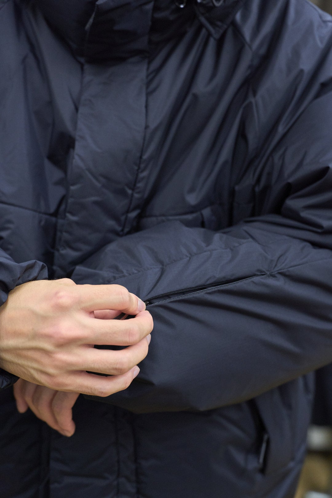 「メインのダウンはミリタリーの防寒アウターとして近年人気のPCU LEVEL7 TYPE1型をベースとしたダウンジャケットで、トレンドのショート丈で女性にもおすすめの1着です」。