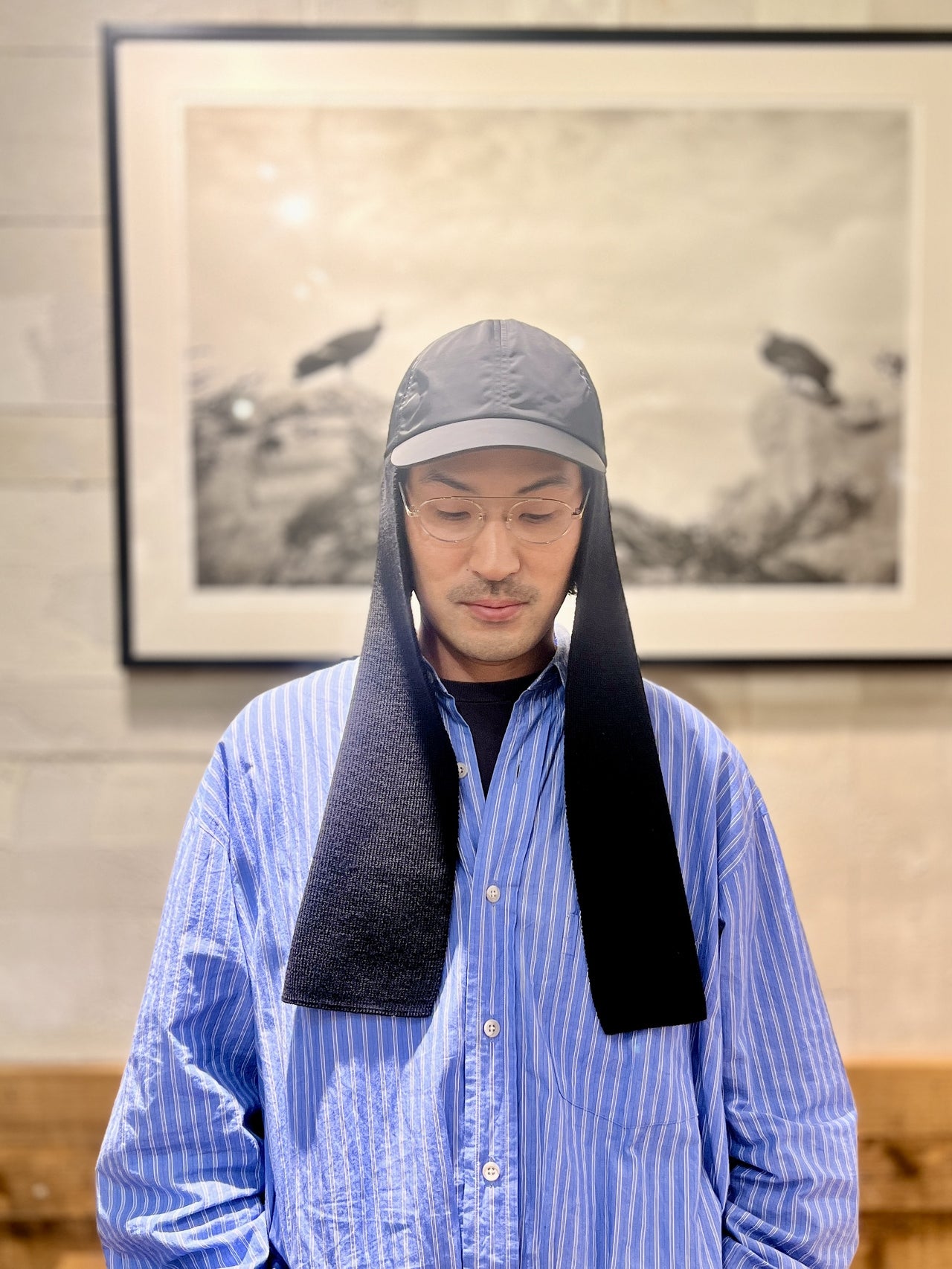 「ナイロンパンツなどテックなアイテムとも相性が良いのですが、僕はあえて、古着っぽいデニムやミリタリー系のアイテムに合わせて履くことが多いです」。