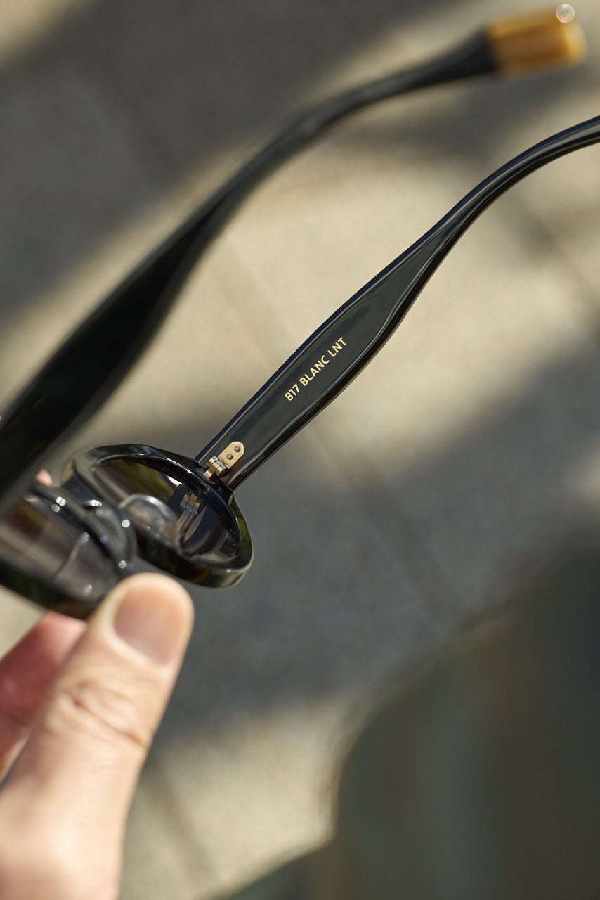 「ブランのサングラスをプラスして、スタイリングのアクセントに。オーバル型でインパクトがあり、かけるだけでグッとおしゃれな印象になれるんです」。