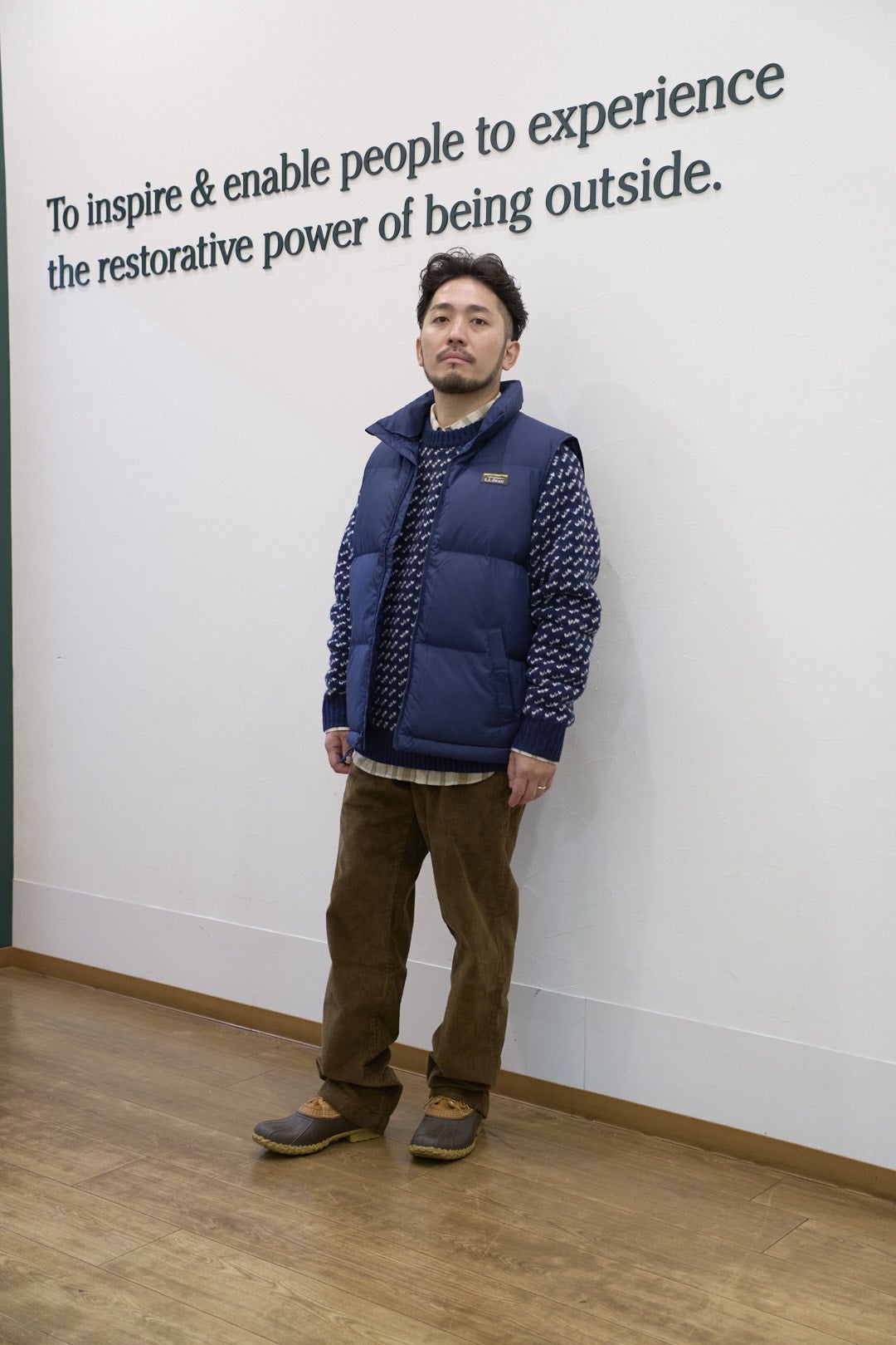 服の仕事に携わる人たちは、どんなダウンアイテムに注目して、どういう風に着こなしているのだろうか。プレス、ショップスタッフ…服のプロたちの今季おすすめの新作ダウンと、その着こなしをお届け。今回はL.L.Bean PRの中村寛規さん。