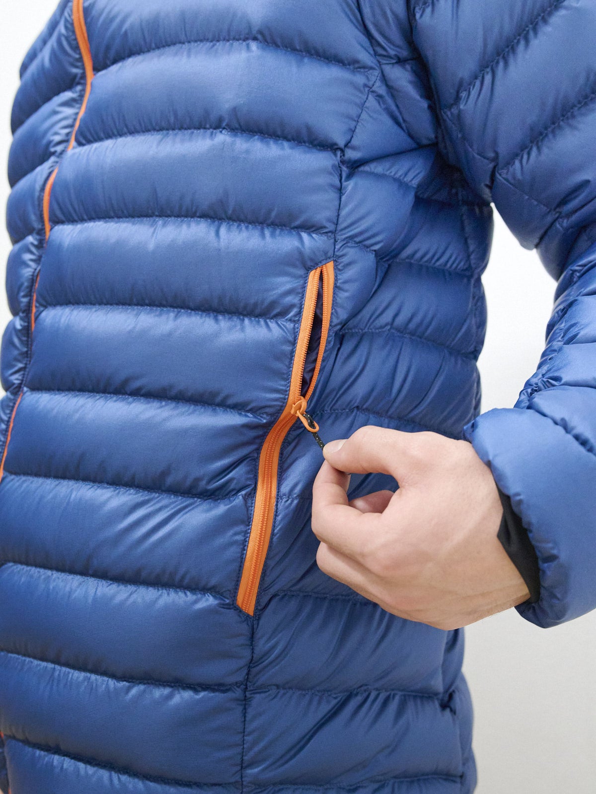 幅細めのキルティングとツヤのある生地がアクティブなムード満点のジップアップジャケット。中わたに撥水加工が施された900フィルパワーのダウンを封入しており、水濡れしてもかさ高が失われにくく、保温性をキープ。首周りを保温するスタンドカラーはジャケットやアウターとも相性が良く、中間着としても活躍する。