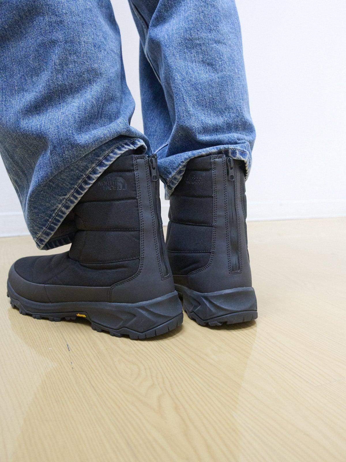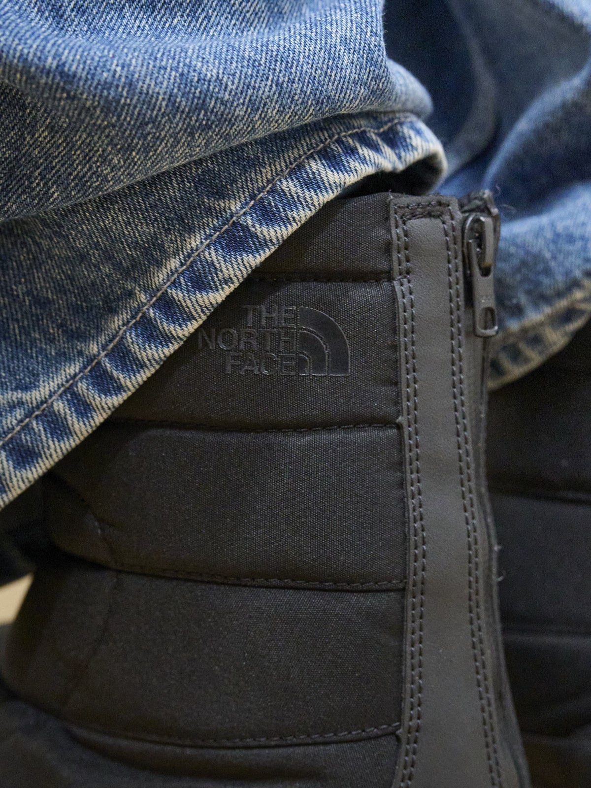 「足元はヌプシ ブーティ ウォータープルーフ バックジップをセレクト。スニーカーを合わせがちなコーディネートですが、あえて黒ブーツを選んで大人っぽく。同じ『ザ・ノース・フェイス』なので、ダウンとの馴染みもいいんです。脱ぎ履きしやすいヒールジップやグリップ力の高いビブラムソールにも惹かれました。何より暖かくて最強です!」。