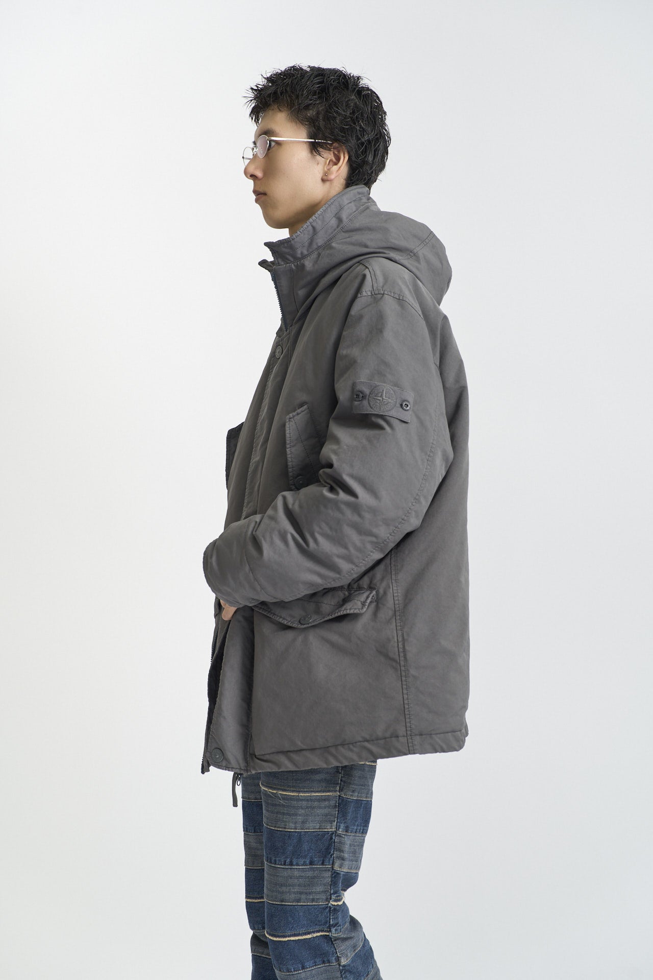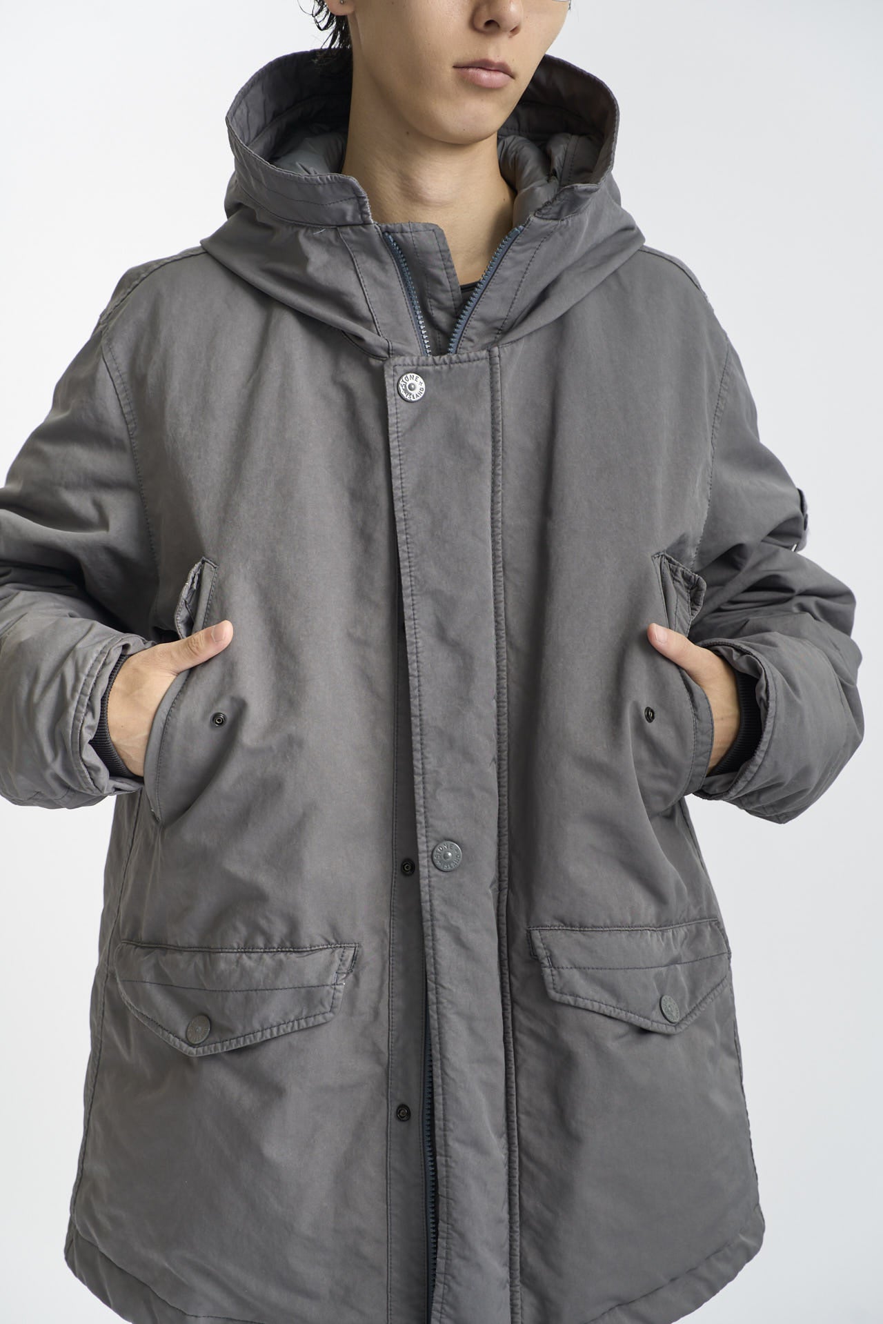 ストーンアイランドが独自に開発した素材「David-TC」を採用した、ダウン入りショートパーカ。都市における「究極のカモフラージュ」の概念をベースにした「GHOSTコレクション」から登場した一着で、全体を同系色でまとめた落ち着きのあるトーンが印象的だ。