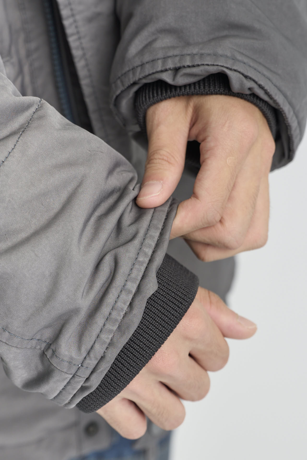 染色工程で130°Cの高温・高圧をかけて生地構造そのものを変化させ、独特のハリ感としなやかさを実現しているのも魅力のひとつ。袖口のリブを隠した仕様で冷たい風をしっかり遮断し、防寒性も抜群だ。