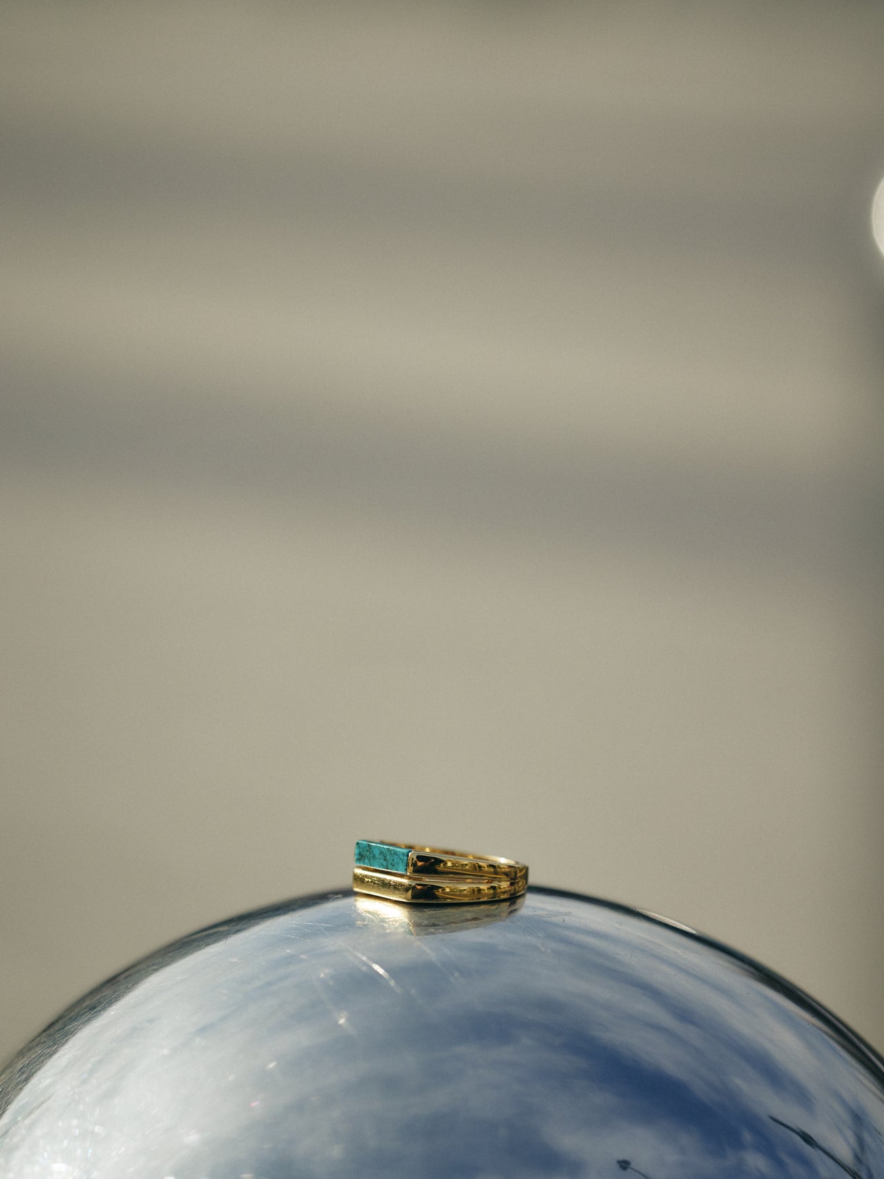「石がさりげなくついたソリッドなアクセサリーも好きですが、このターコイズとゴールドの組み合わせが個人的にツボ。ゴツすぎないところもいいですよね」