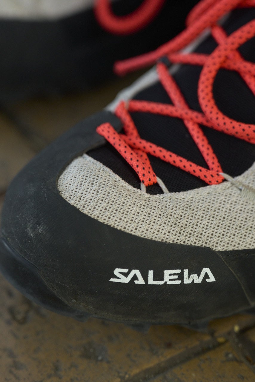 サレワ (SALEWA)は1935年ドイツで創業し、現在はイタリアに拠点を置くマウンテニアリング(登山・山岳)ブランド。知る人ぞ知るコアなブランドの愛用スニーカーをチョイスしてくれたが、デザインもディテールも機能性も目を惹く圧倒的存在感だ。ドイツの技術とイタリアのデザインを融合させていることから、洗練された雰囲気を纏っている。初心者から本格的な登山者に向けて幅広い支持を集めており、普段履き以上のパフォーマンスを見せれくれる。