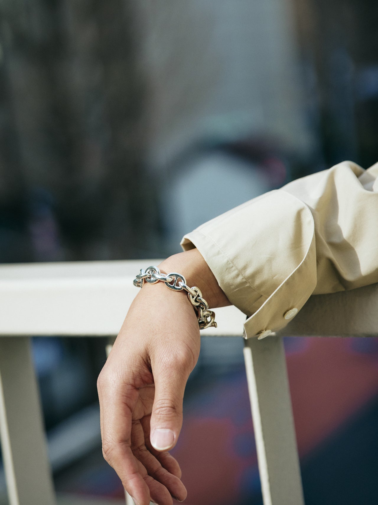 【コワザ】品よく都会的なムードのスタイリングにまとめることで、手元のブレスレットを一層際立たせた
