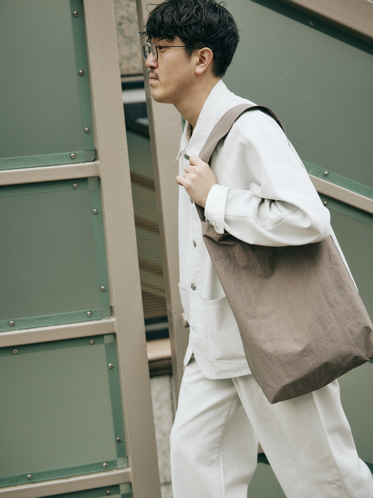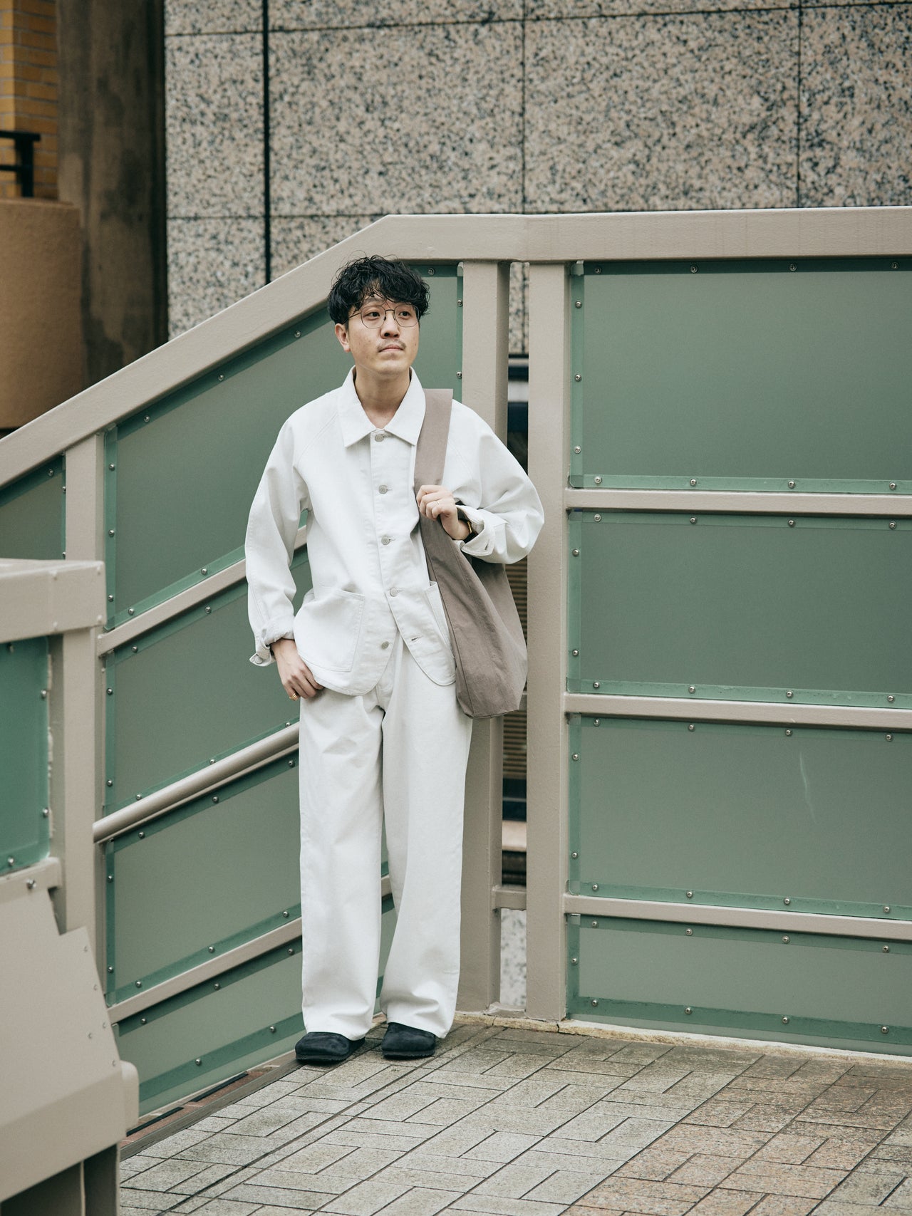 【コワザ】グレートーンのバッグに合わせて、コンクリートカラーのデニムセットアップをセレクト