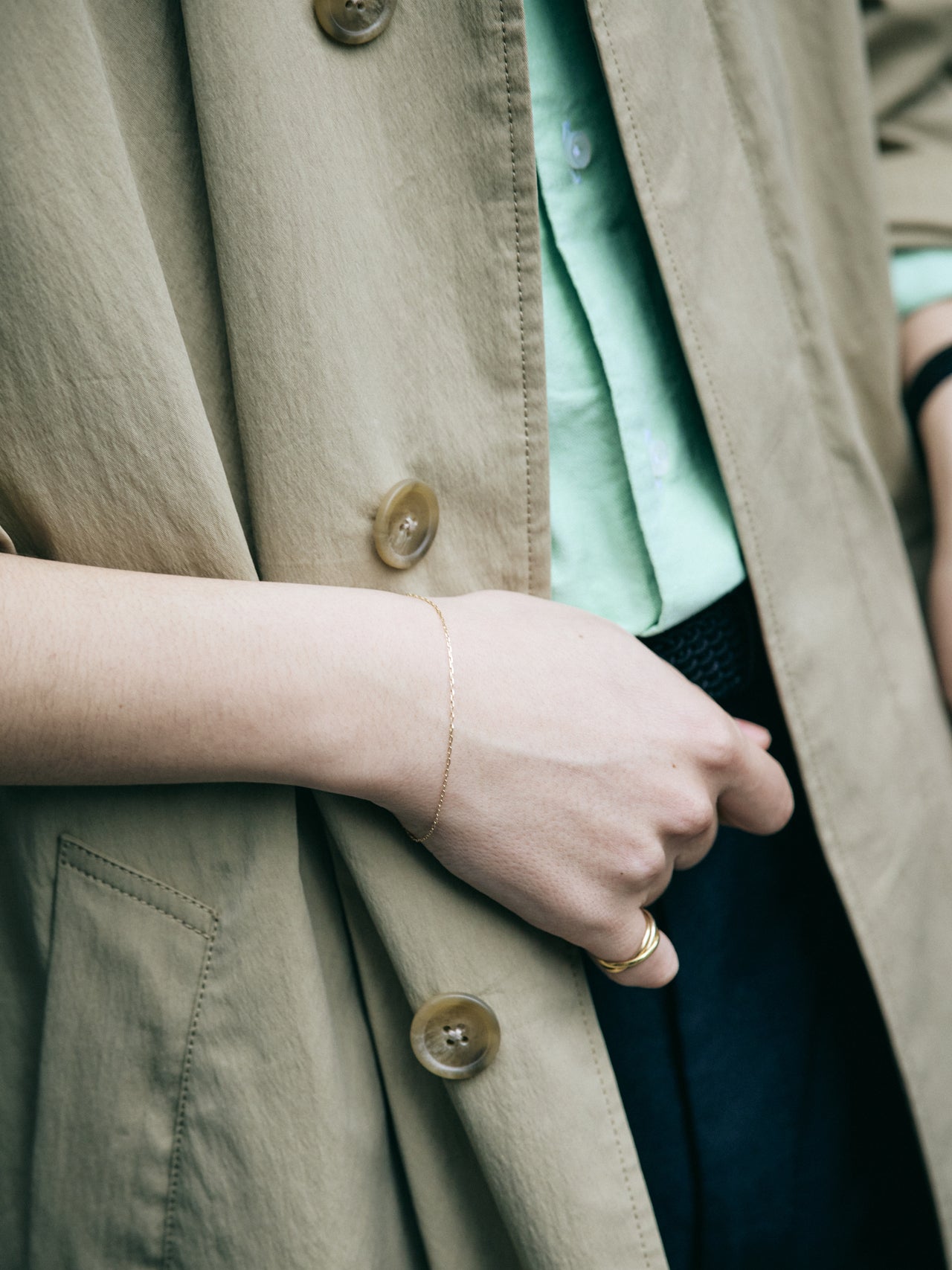 「おもに英国のジュエリーなどで使われることが多いK10イエローゴールドは、日本人の肌にも馴染みやすいと言われます。華奢で、コーディネートを選ばず、着用時のストレスも少ないので、気づけば身につけています」