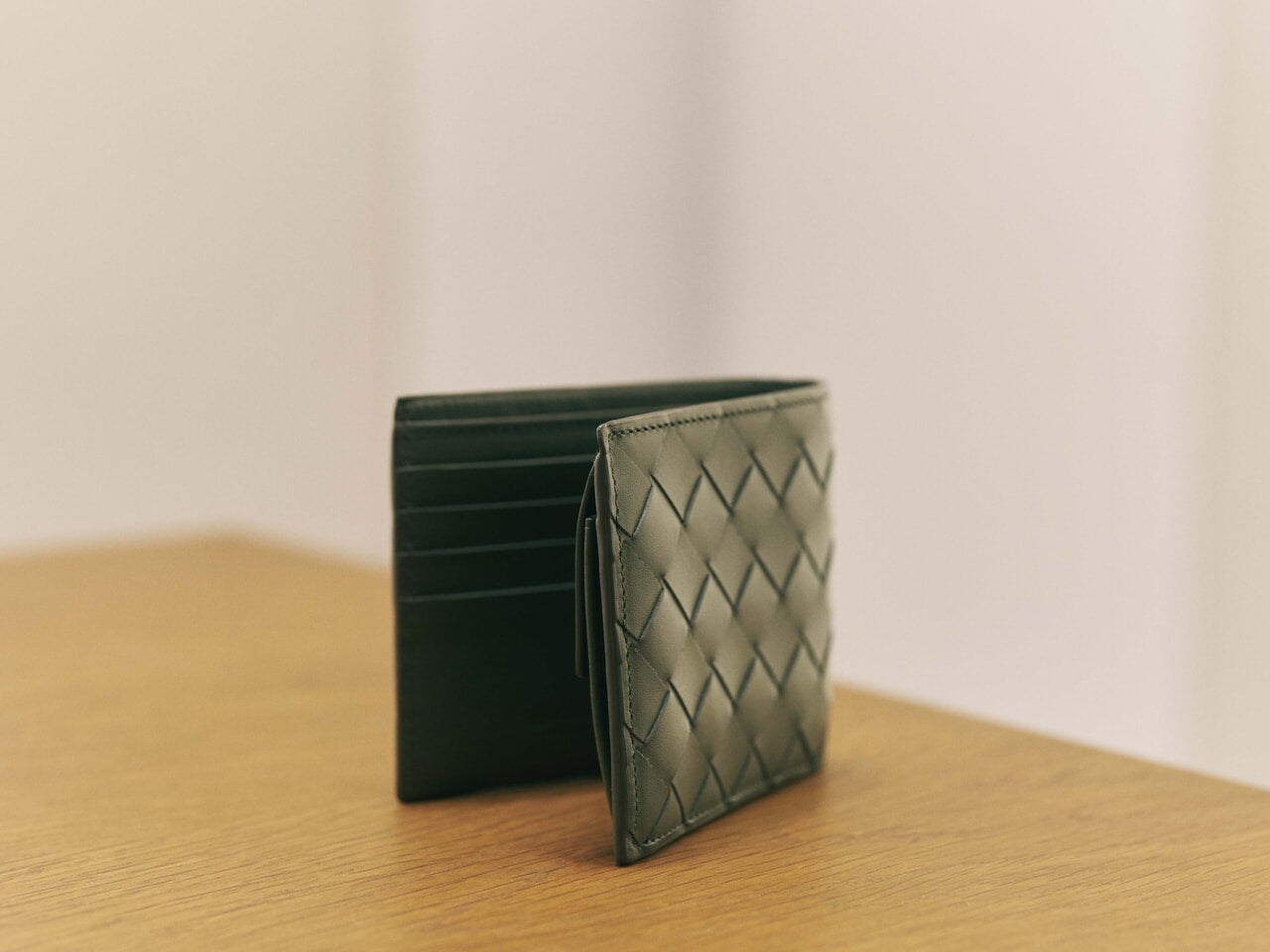 キャッシュレス化が進み、今は二つ折りウォレットがスタンダード。ボッテガ・ヴェネタの新作は、カードスロット4つ、札入れ2つ、ポケット2つ、コインパースつきで、日々の相棒として最高のディテールだ。
