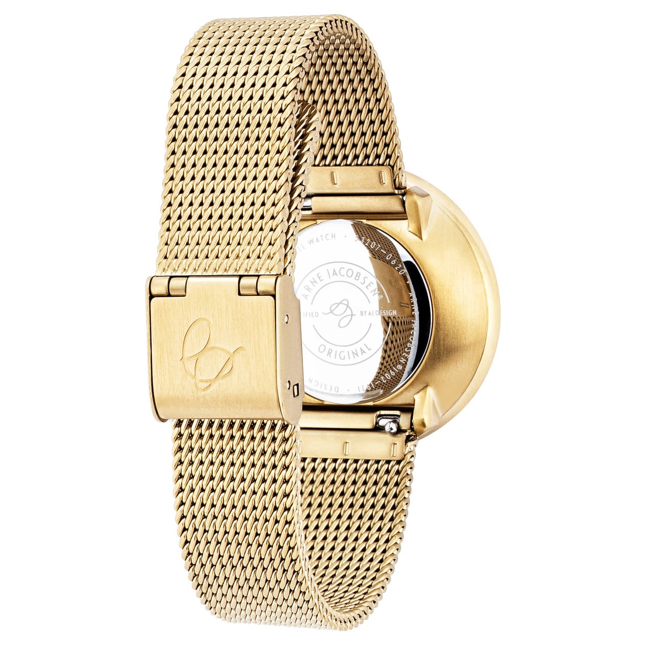 ゴールドで彩った配色が、深いネイビーダイヤルを引き立てる。このネイビーは英国・オックスフォード大学の公式カラーとして知られる色で、どこか知性も感じさせる。(アルネ ヤコブセン)¥34,650/アイ・ネクストジーイー
