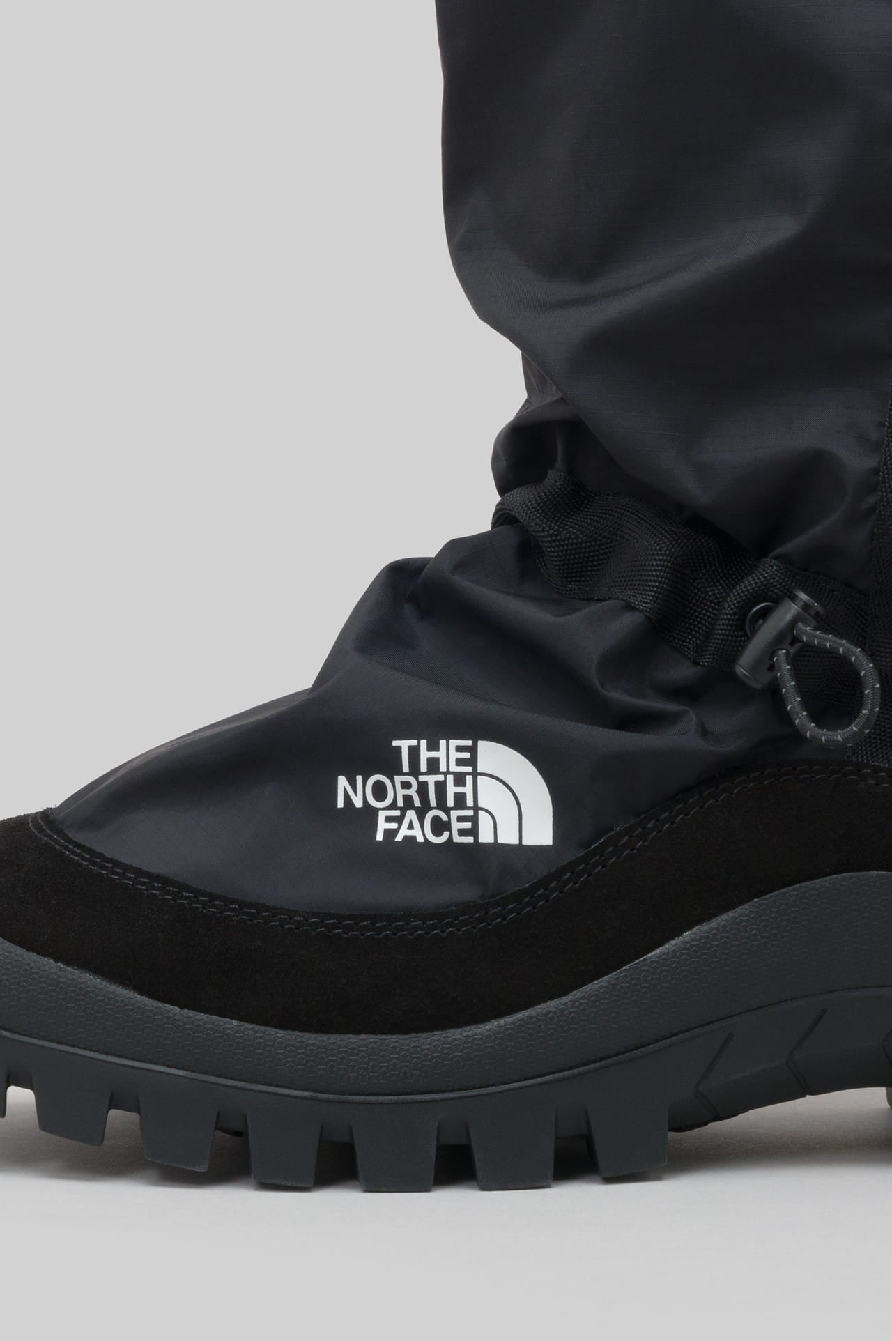 トレイルランニングシューズの開発から生まれたザ・ノース・フェイス オリジナルの厚底ソールを採用。クッション性や推進力を生むだけでなく、デザインのアクセントとしても一役買っている。そこにレザーシューズのデザインが反映されたアッパーが合わさり、両ブランドならではのコラボシューズに。ヒール部分のロゴもキャッチーだ。