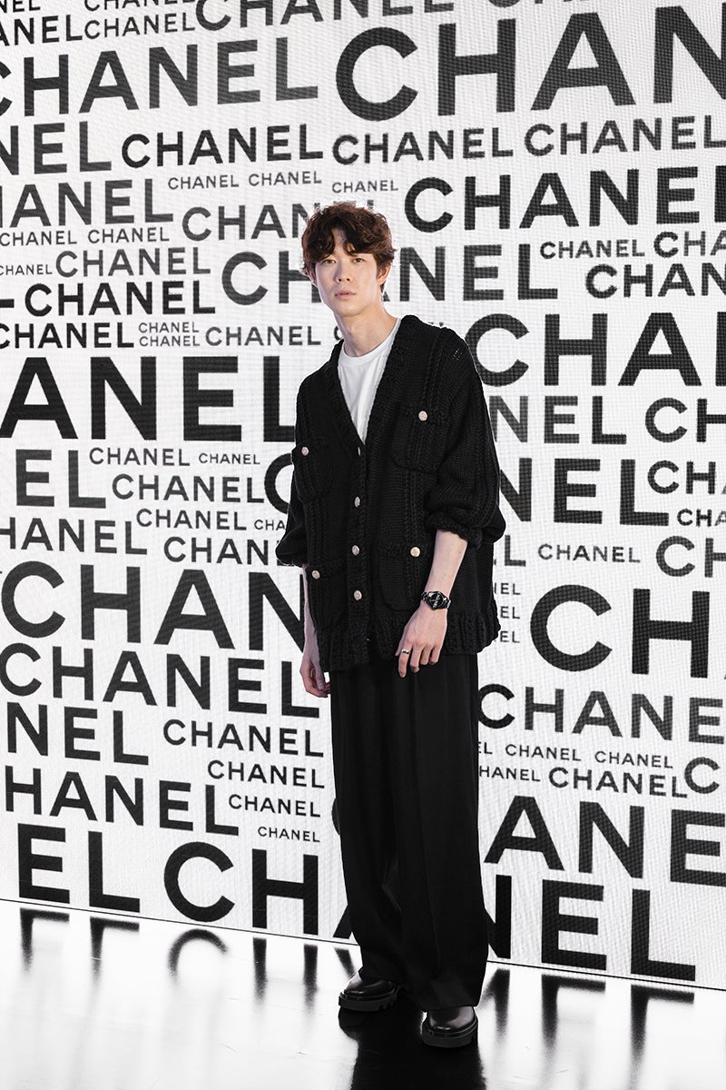 氷魚が身につけたのは、限定ウォッチモデルの38 ㎜「J12 ウォンテッド ドゥ シャネル」 。手元のレイヤードとして、左手人差し指には18Kホワイト ゴールドのリング「ココ クラッシュ」 を合わせてソリッドに。コーディネートは22年春夏のプレタポルテ コレクションから、黒いカーディガンをセレクト。時計の黒フェイスに合わせたブラックコーデが洗練さを醸し出していた。