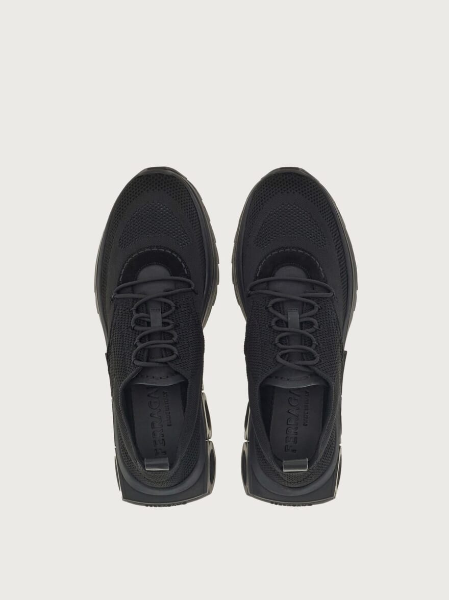 フェラガモのヘリテージを現代的なアプローチで再解釈し、ガンチーニを3つ並べたコンテンポラリーなデザインのスニーカー。