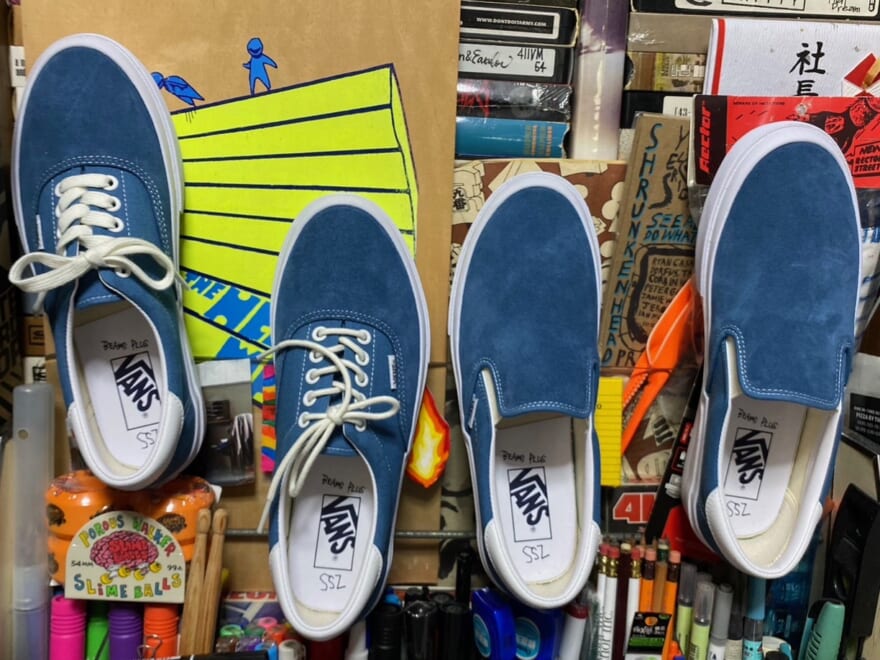 多くの人々から愛され続けているモデル『ERA』と『SLIP ON』の2型に別注。アッパーのスエードがタフさと上品な印象を両立させている!