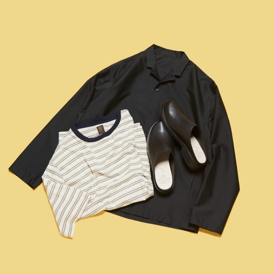 ![①鹿俣 鴻太さん/アダム エ ロペ ルミ 新宿店 ショップスタッフ [右]ボックスシルエットが気分にマッチ。シャツ ¥15,950・[中]ミリタリーテイストを落とし込ん だクロッグタイプ。サンダル(フット・ザ・コーチャー)¥43,450・[左]ネイビーのネックでリンガ ーT風に着られる。Tシャツ(バトナー フォー ア ダム エ ロペ)¥15,400/アダム エ ロペ](https://www.mensnonno.jp/wp-content/uploads/2024/07/1-7-880x880.jpg)