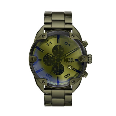 ディーゼルのクリエイティブ・ディレクターであるグレン・マーティンスがデザインに携わった「メタモルフ」プロジェクトのひとつ「STREAMLINE」は、爪をイメージしたダイヤルと、立体的なレザーストラップのラインのコンビネーションが美しい。立体感あふれるディテールを、偏光グリーンの風防がさらに引き立てる。ラフなデニムと合わせて、ゼロ年代感のあるスタイリングを楽しもう。