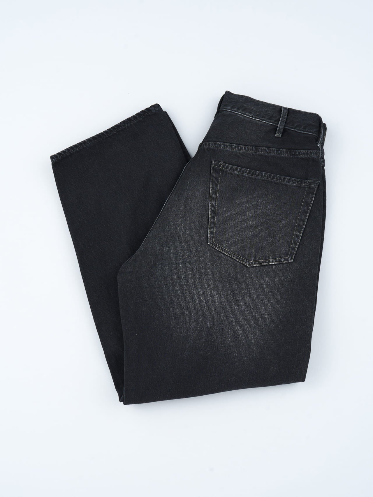 「コットンデニムに加工を施した定番の5ポケットデニムパンツ。ステッチの表糸と裏糸の配色や、後ろパッチポケットの隠しカンヌキなど、ヴィンテージデニムのディテールを踏襲したこだわりの1本。13オンスのある程度の粗野っぽさと膨らみを感じられます」。