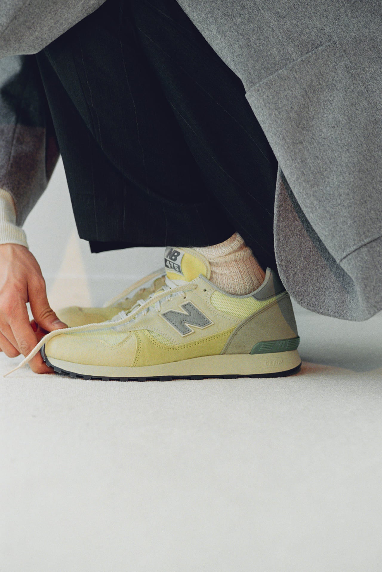 本コラボレーションでは、AURALEEによって475の素材やカラーリング、ディテールをアップデート。80年代のクラシックなランニングシューズにルーツを持つ475に着想を得て、長い時を経て自然に日焼けし、色褪せたデッドストックの様な色味を表現。