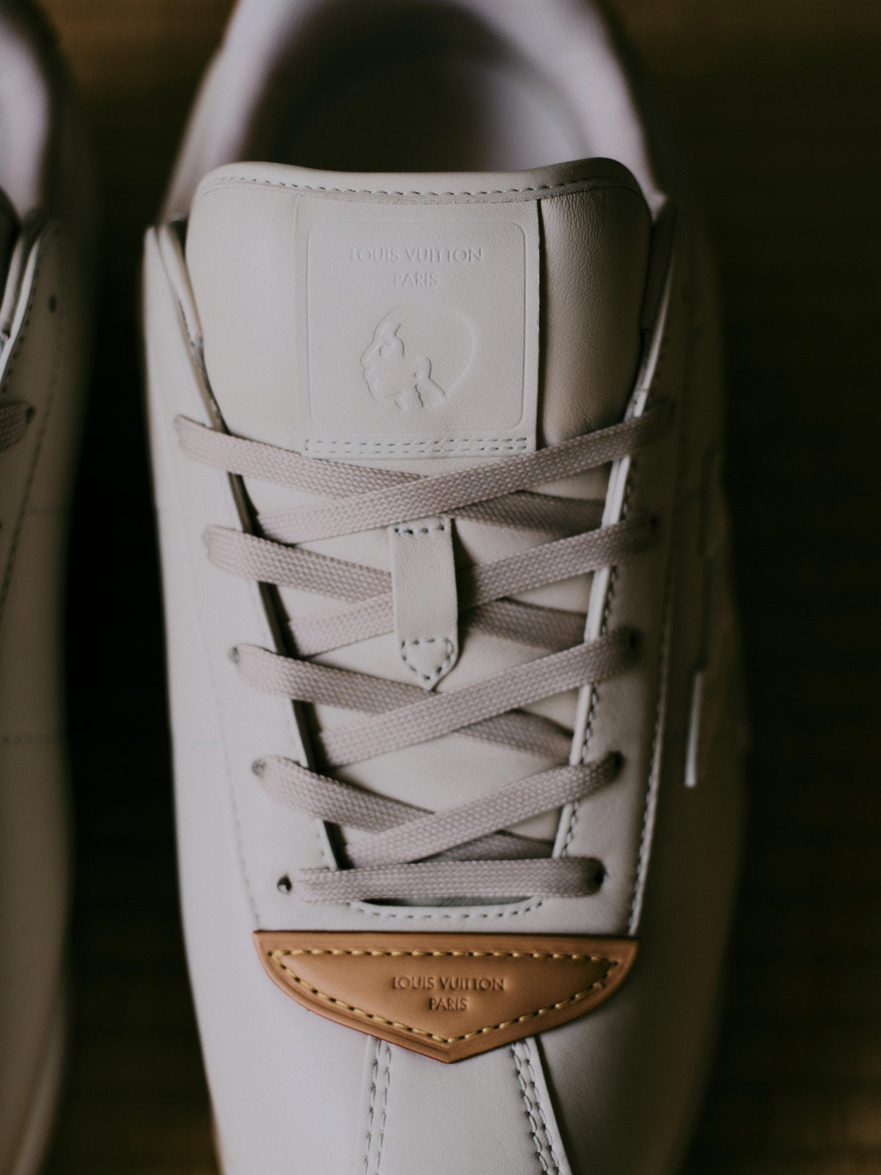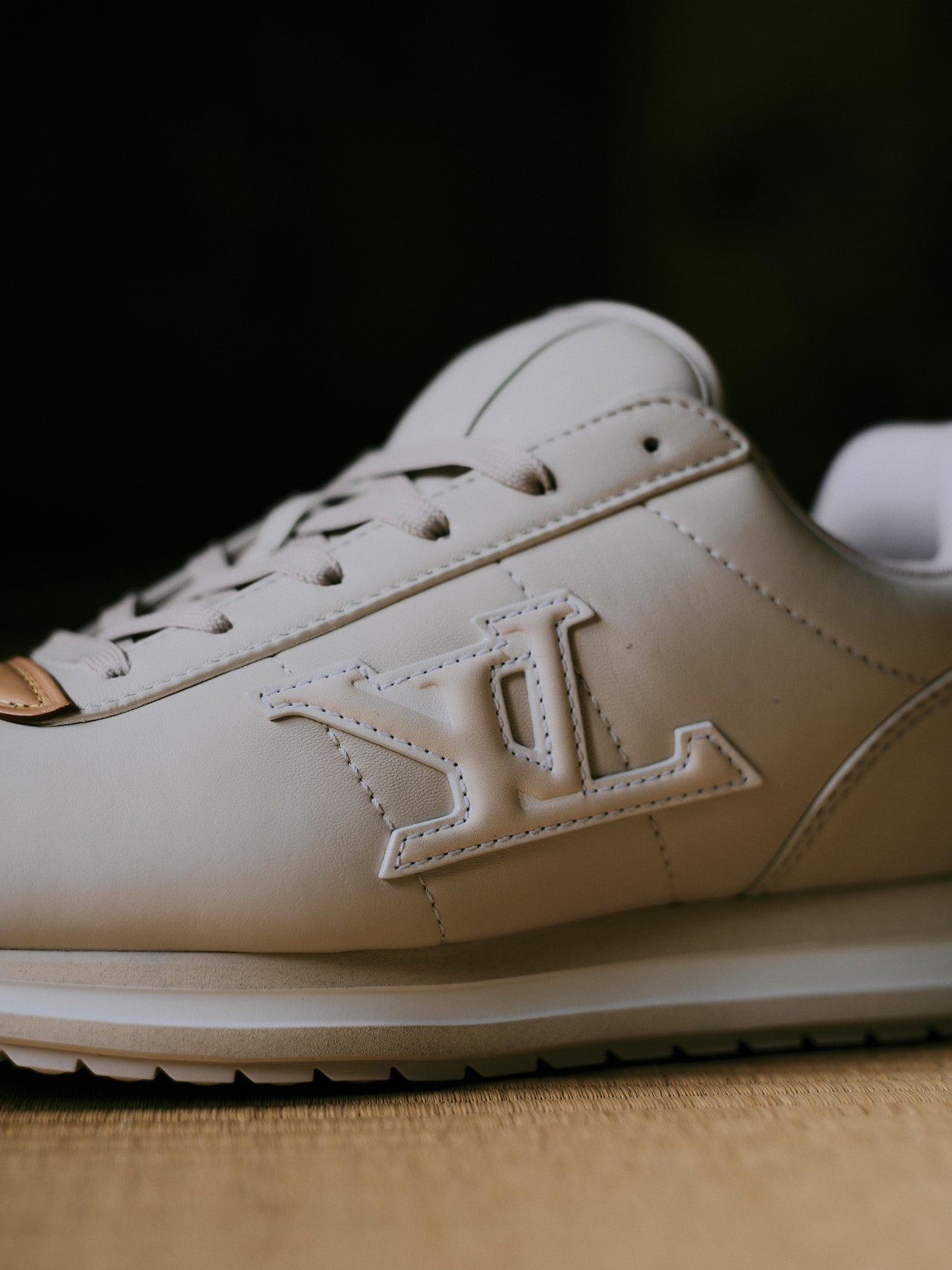 メンズ クリエイティブ・ディレクター、ファレル・ウィリアムスがデザインを手がけた「LV バターソフト スニーカー」。ルイ・ヴィトンの職人がラムレザーとカーフレザーを組み合わせることで、この上なく柔らかな質感とパッド入りのアッパーを最大限に引き立てた。LV イニシャルやヌメ革のトリミング、2025秋冬メンズ・ファッションショーならではのエンボス加工で施したファレル・ウィリアムスの横顔とロブスターのモチーフといった豊富なディテールも魅力。