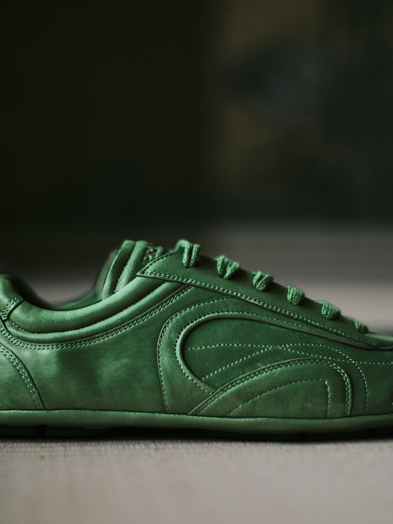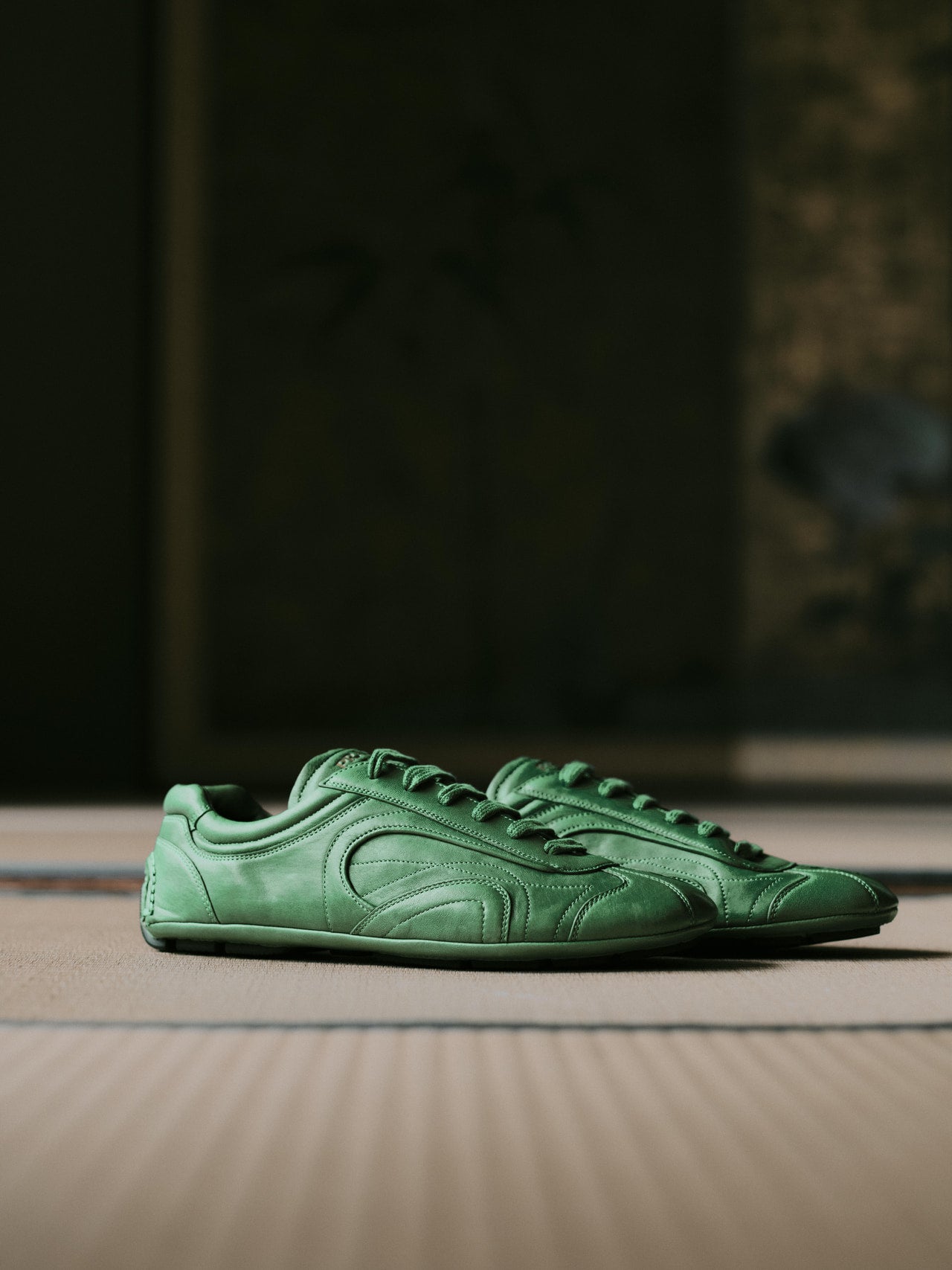 2005年にPRADA Linea Rossaコレクションの一部として初めて登場したスニーカー「Prada Montecarlo」の最新バージョン。オリジナルモデルのダイナミックなラインを反映したトップステッチのスポーティなスタイルが特徴だ。ドライビングシューズにインスパイアされた柔らかく柔軟なナッパシルエットも今っぽい。ビビッドグリーンの1足をコーディネートのアクセントに。